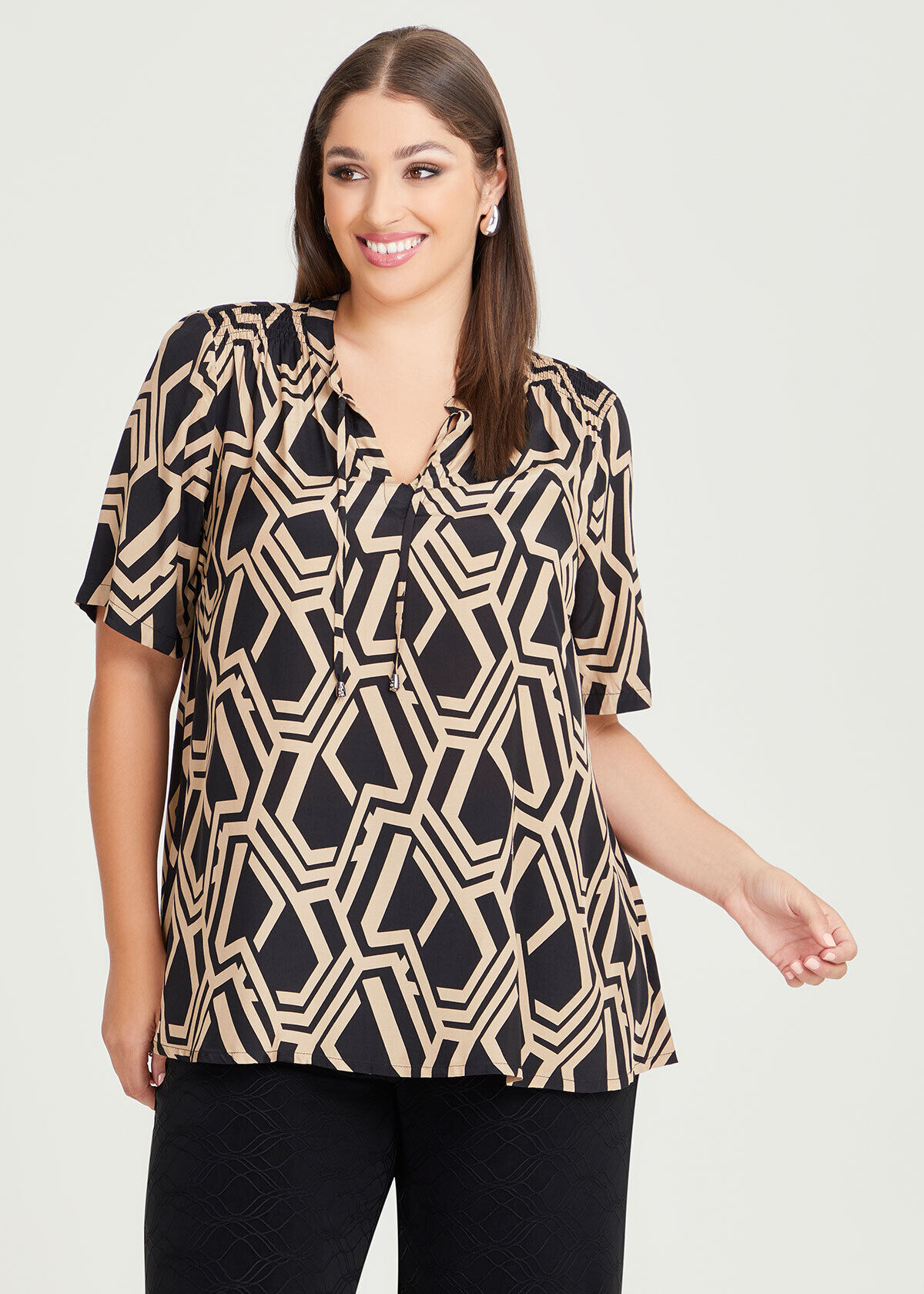 plus size tie neck top