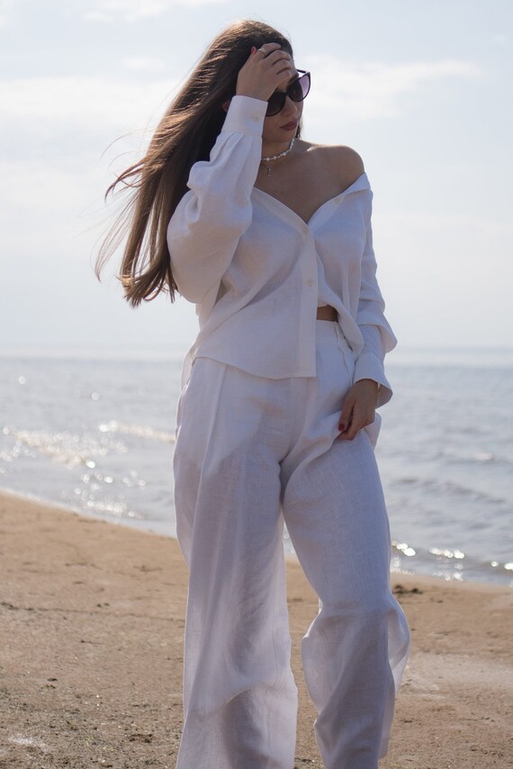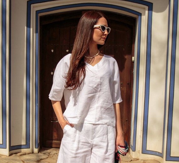 plus size white linen blouse