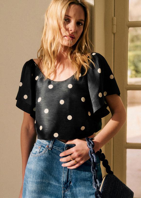 polka dot black blouse