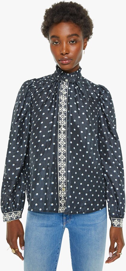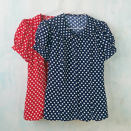 polka dot blouse navy
