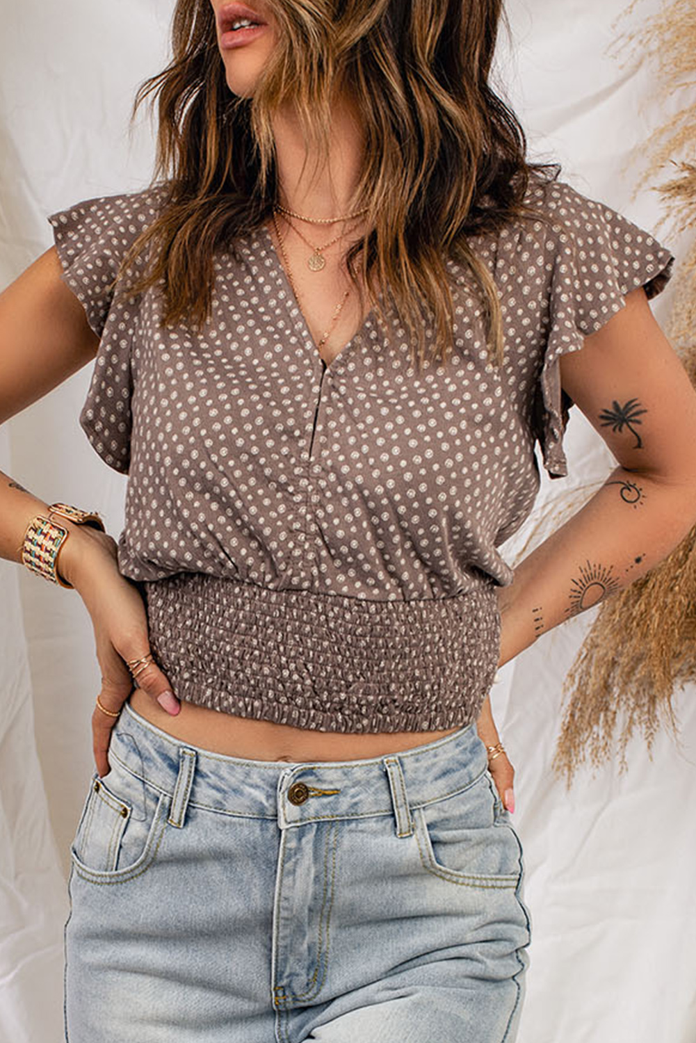polka dot smocked top