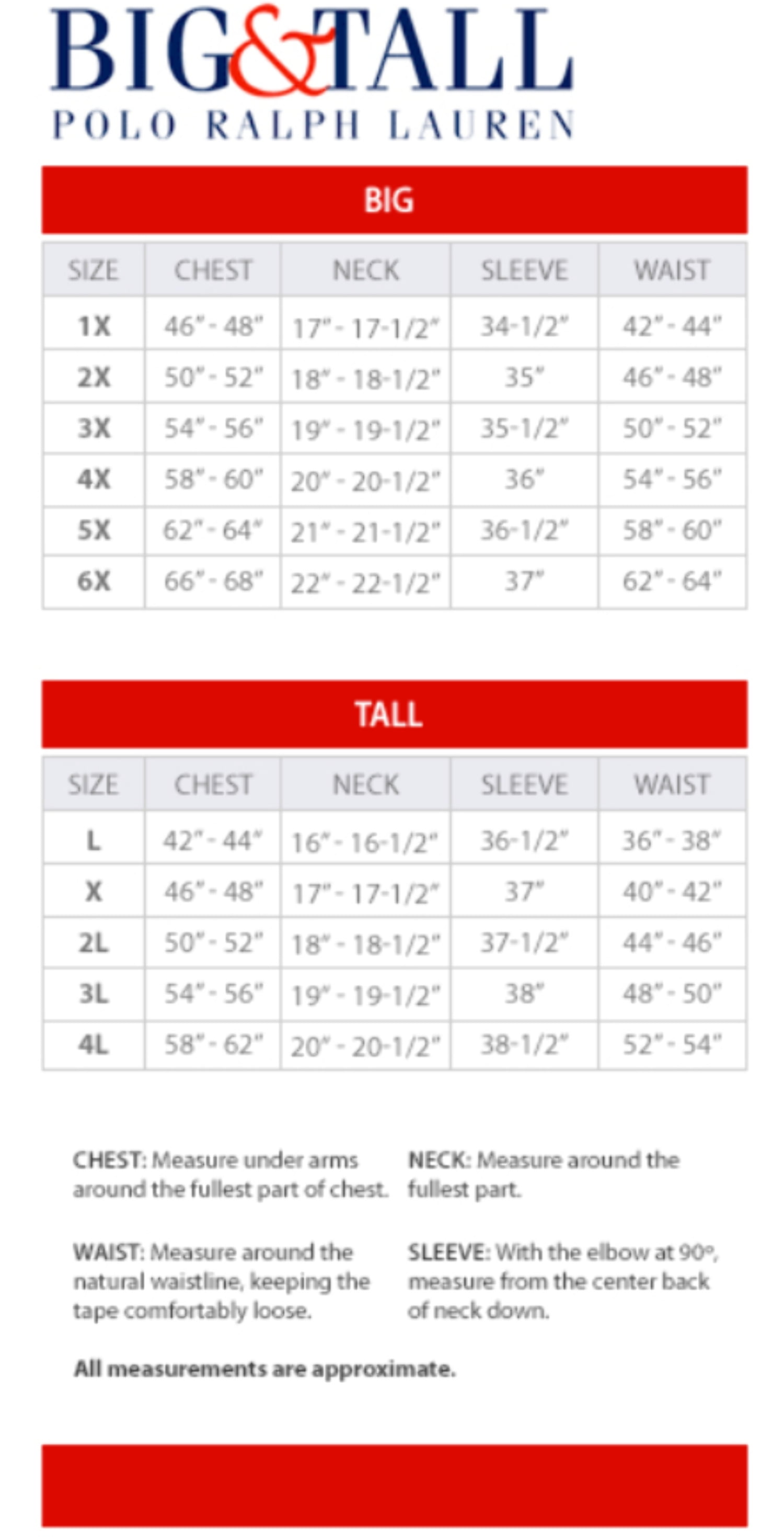 polo ralph size chart