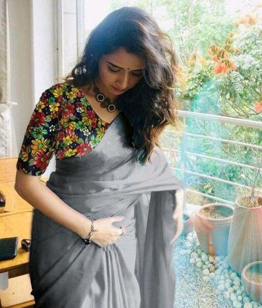 printed blouse plain saree