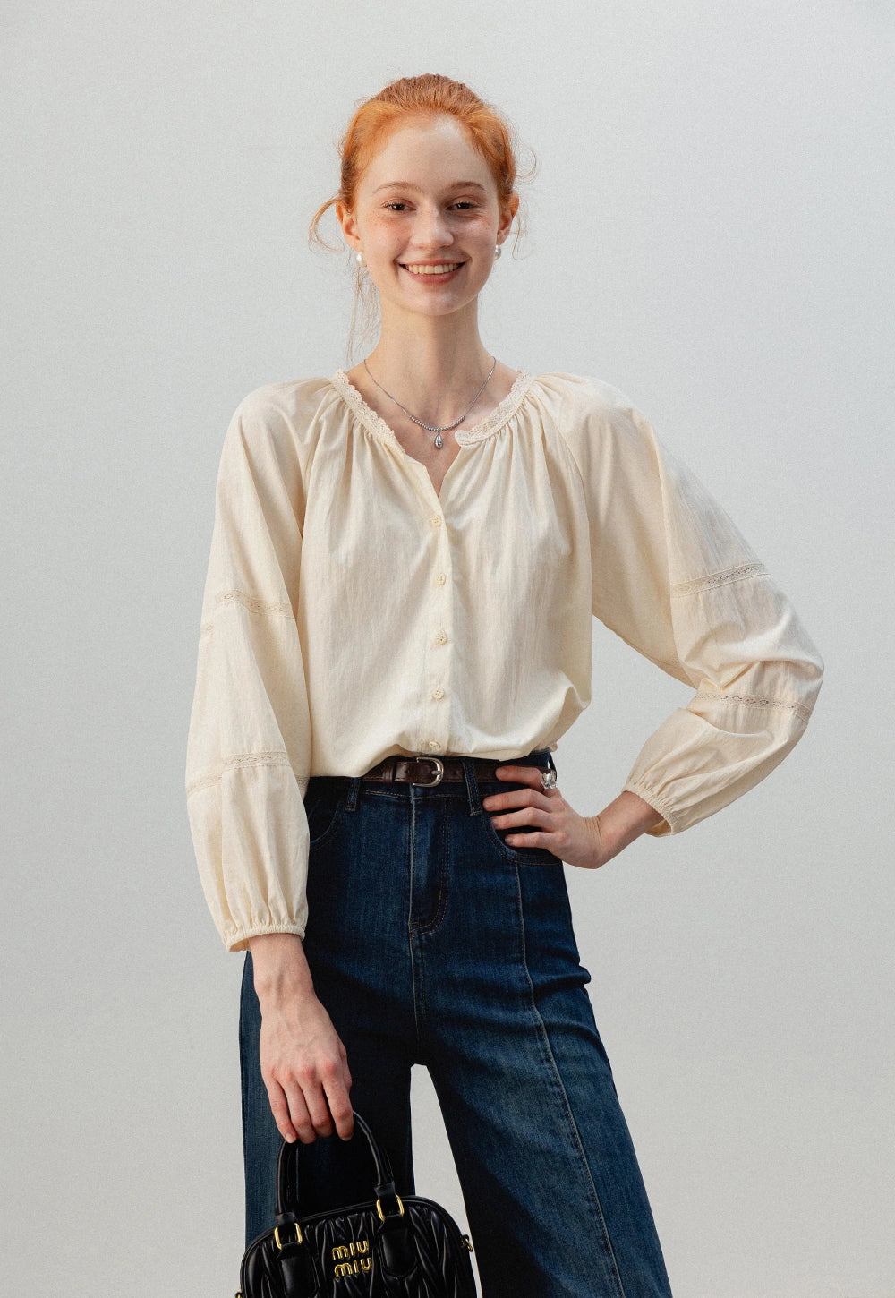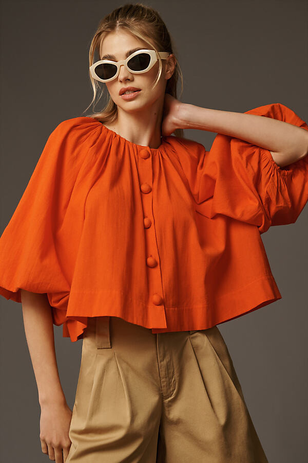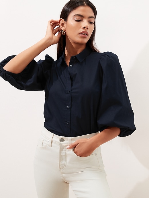 puff sleeve button down blouse