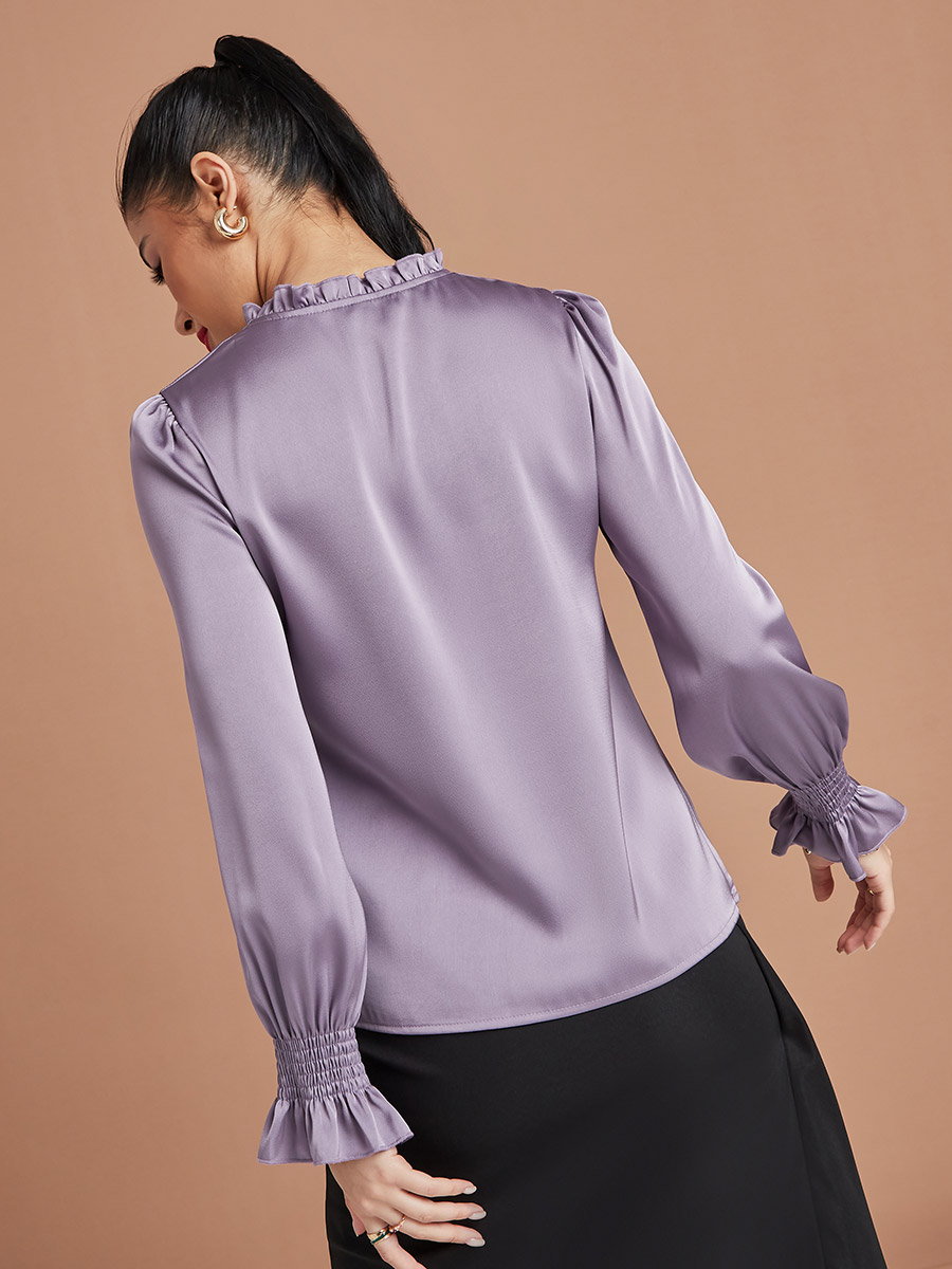 purple tie blouse
