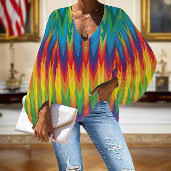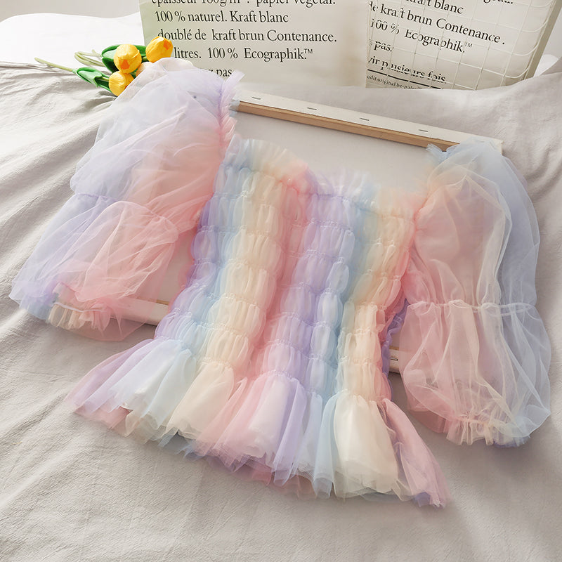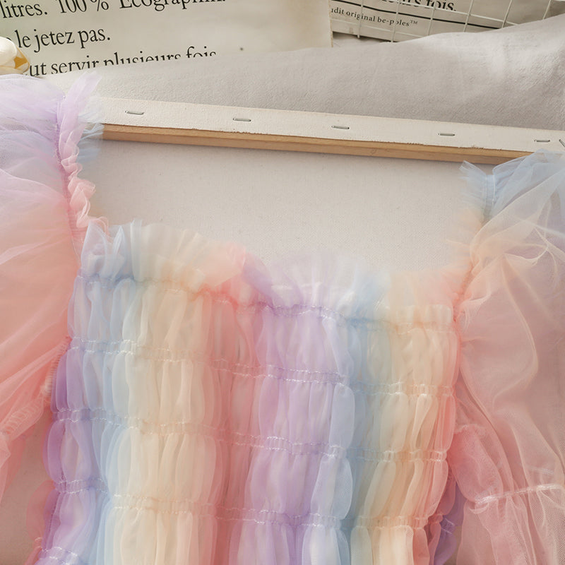 rainbow puff sleeve top