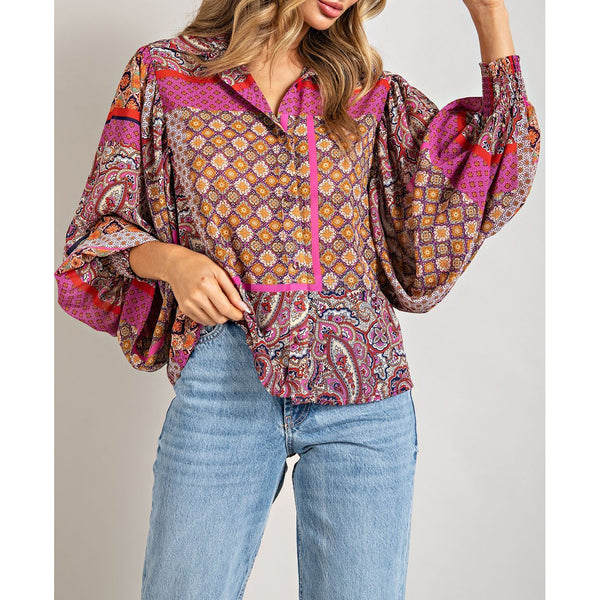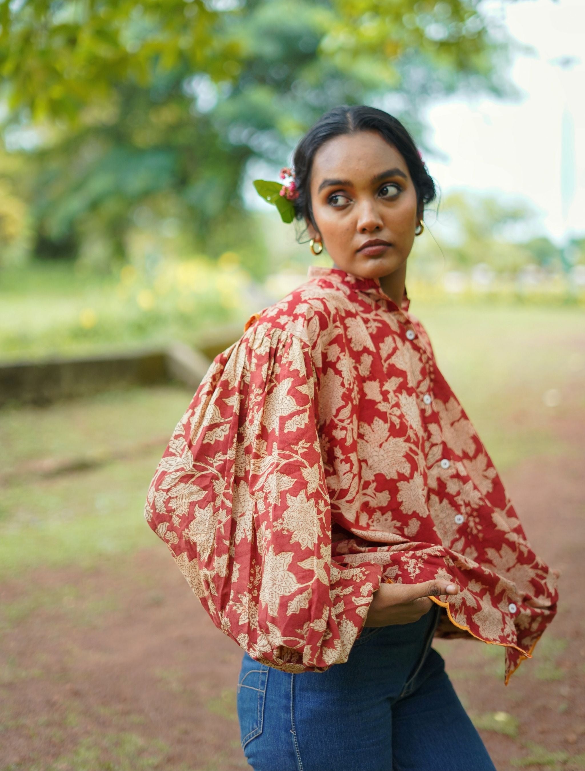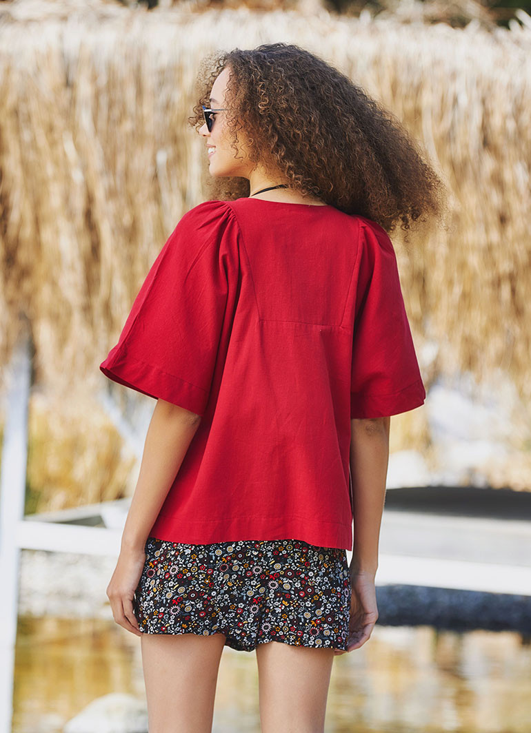 red boho blouse