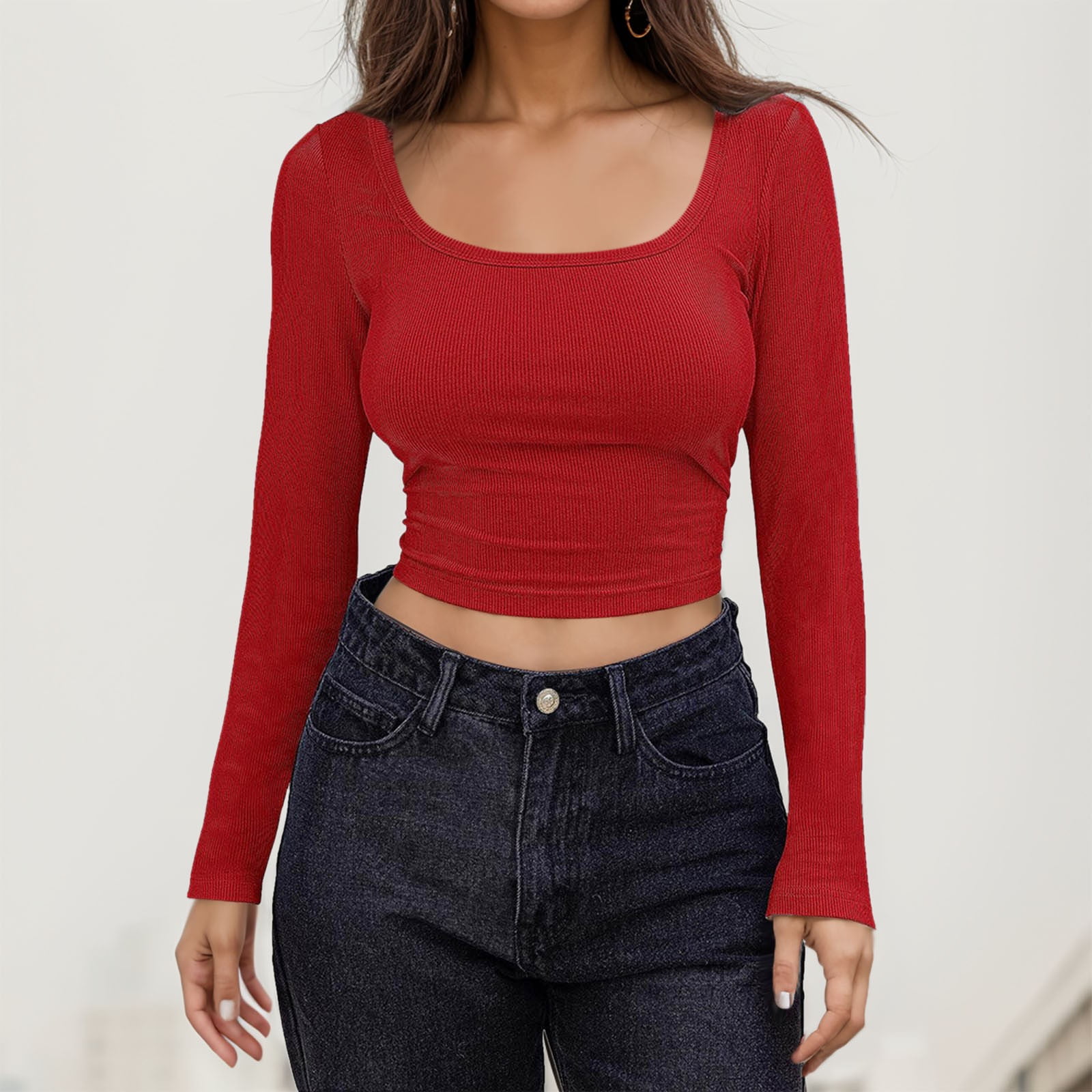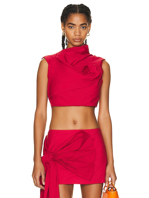 red crop top blouse