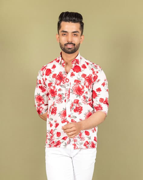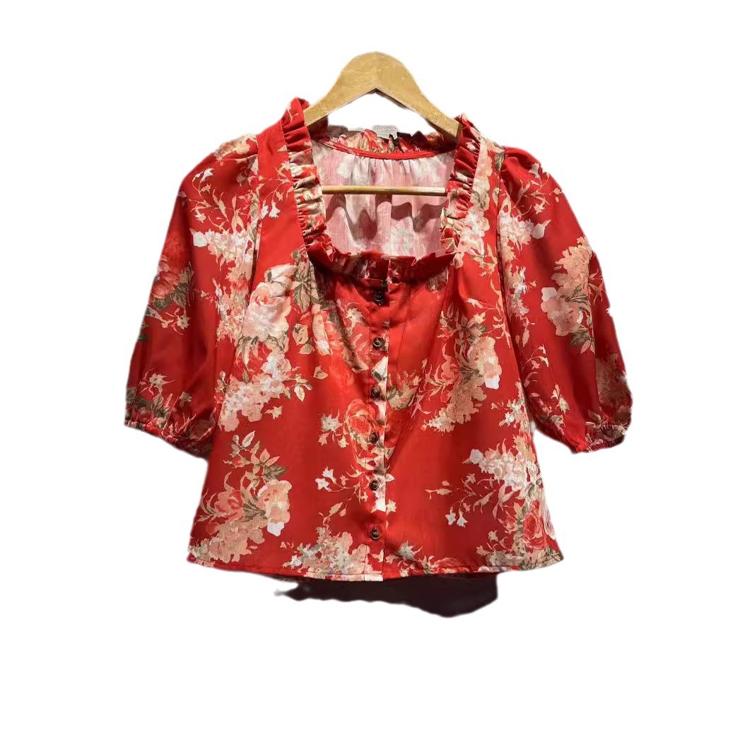 red floral print top