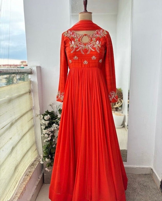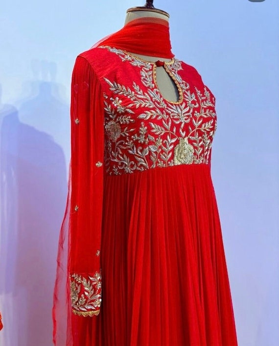 red full sleeve anarkali