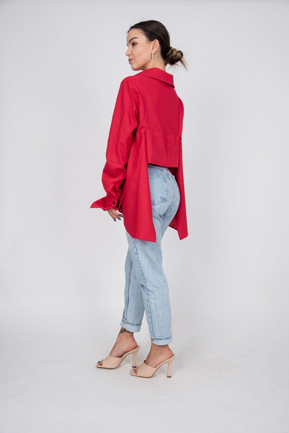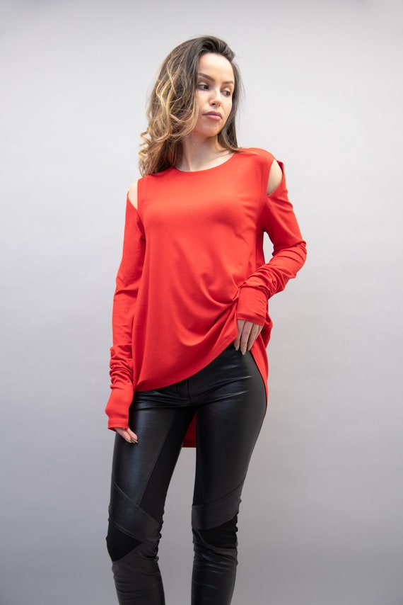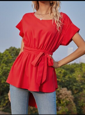 red high low blouse