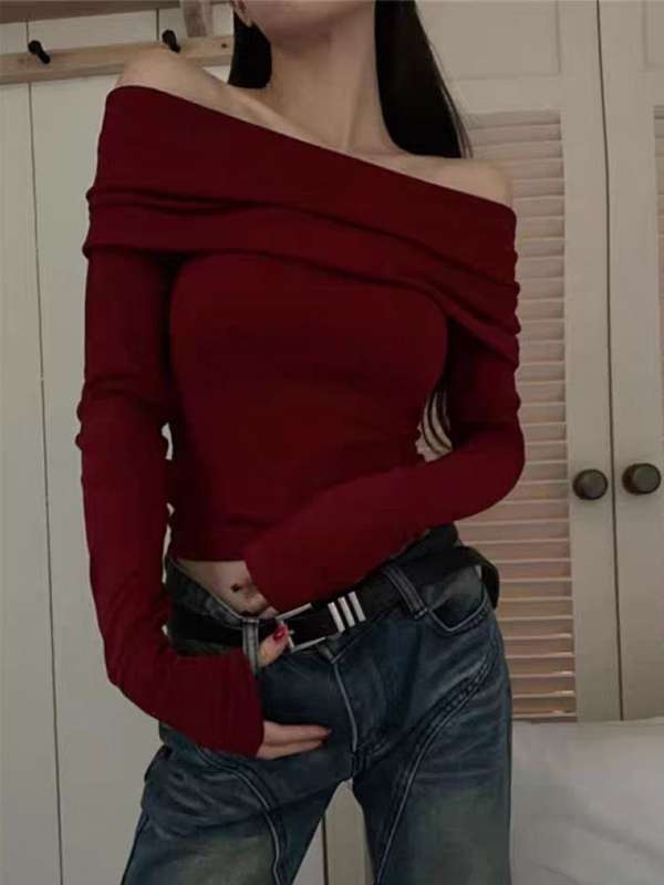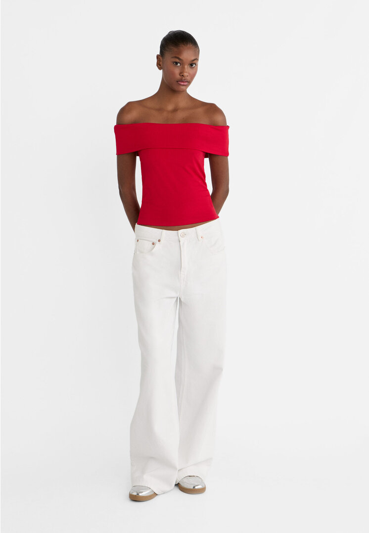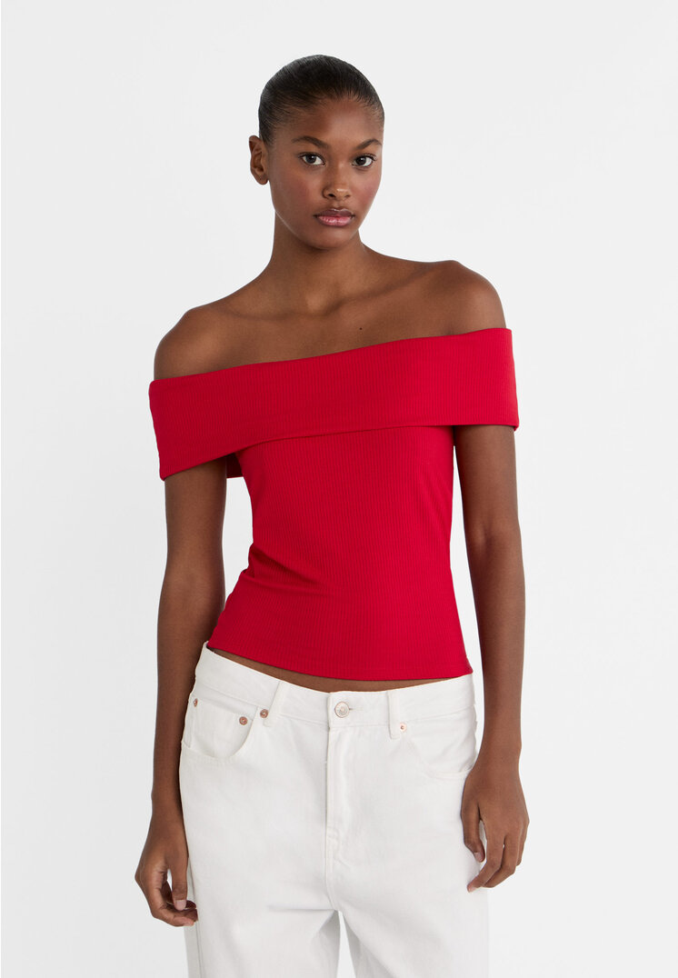 red open shoulder top
