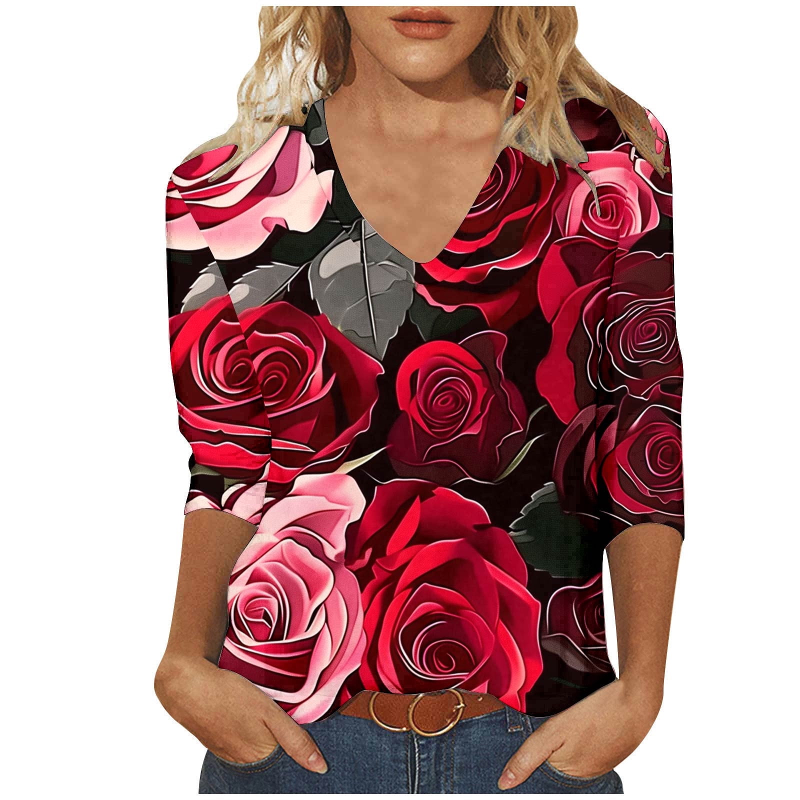 red rose blouse