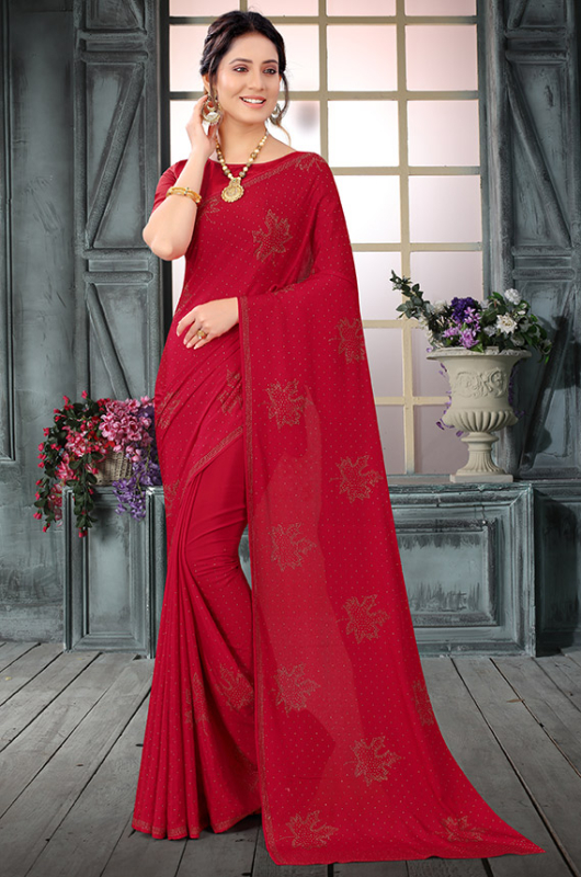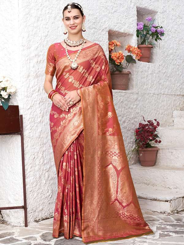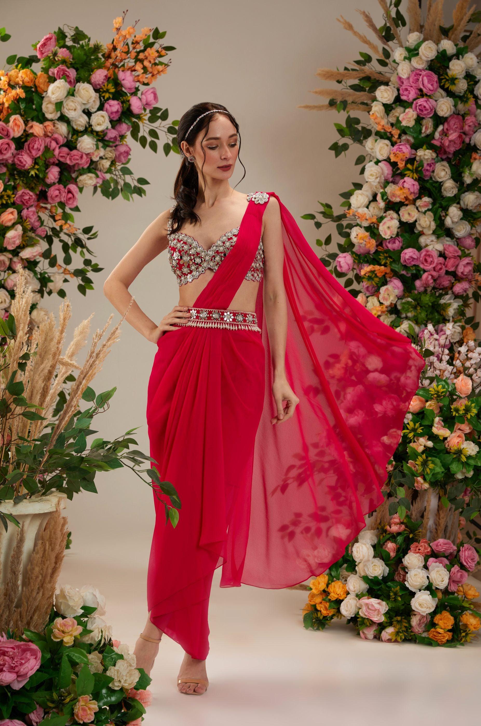 red saree pink blouse