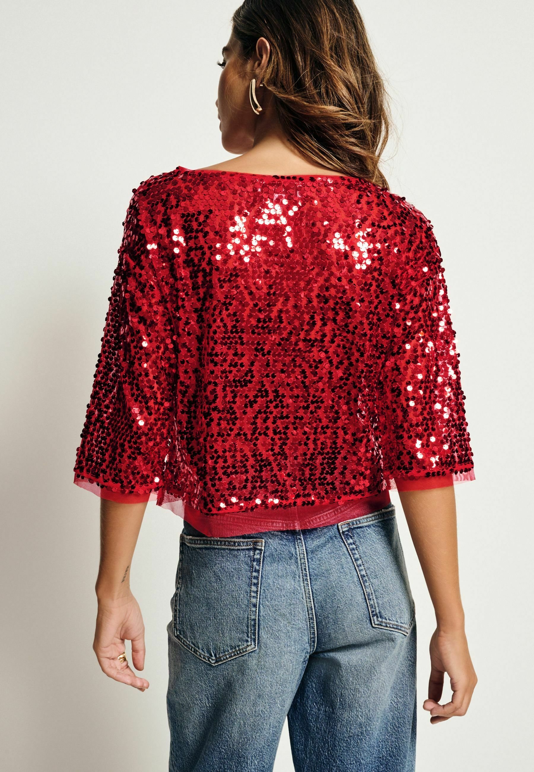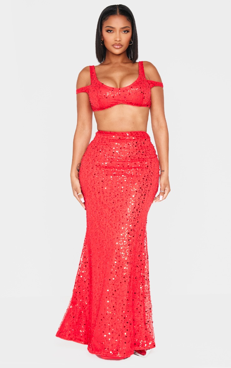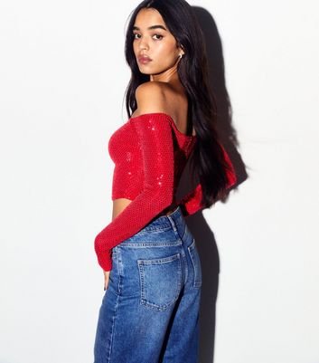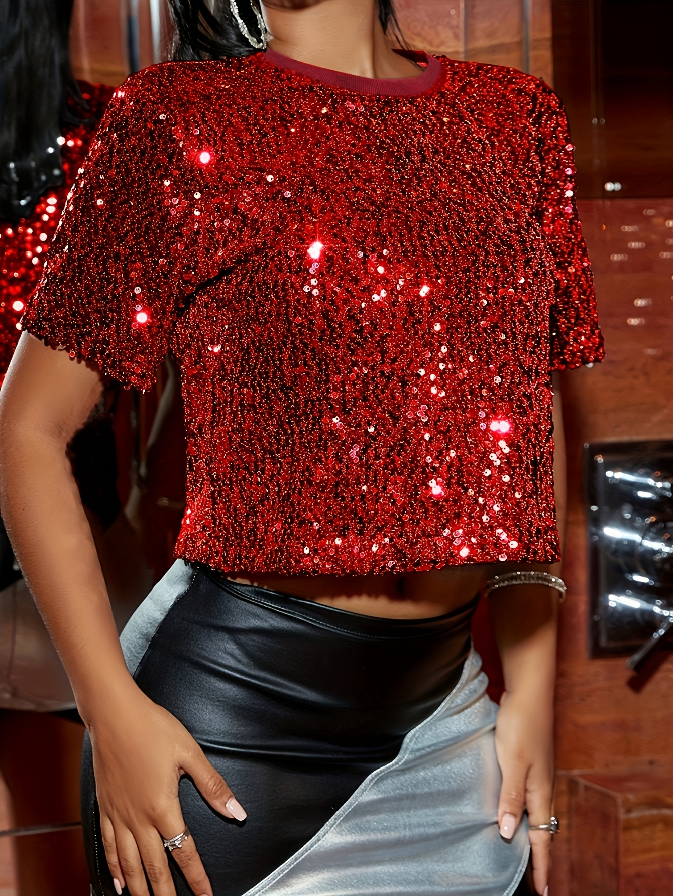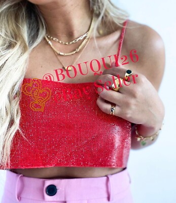 red shimmer crop top