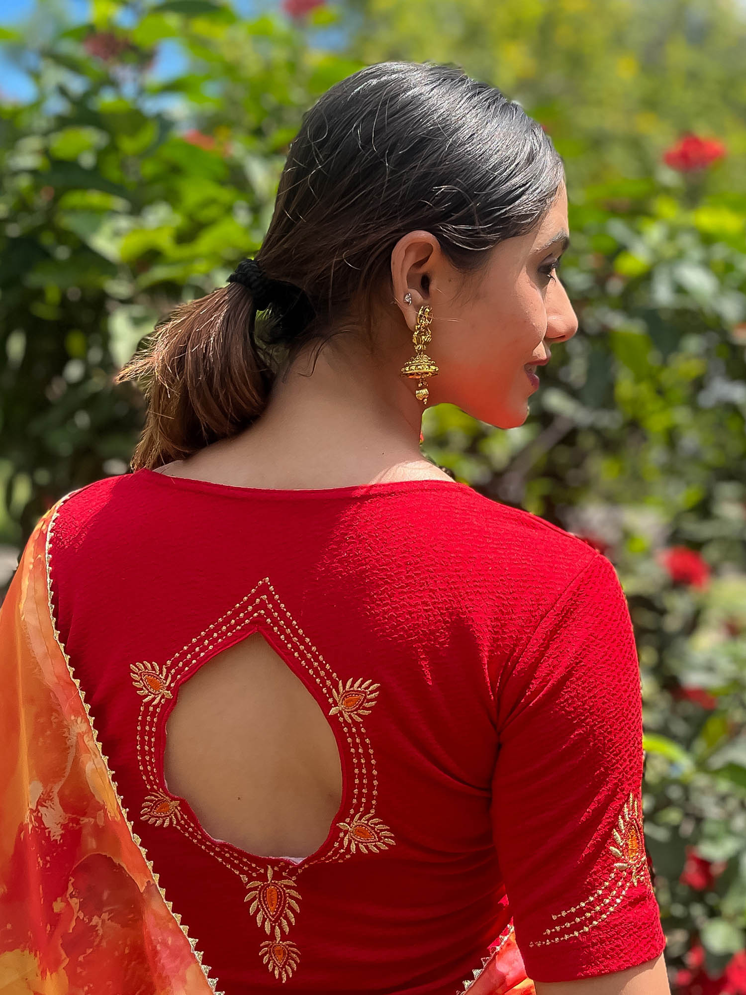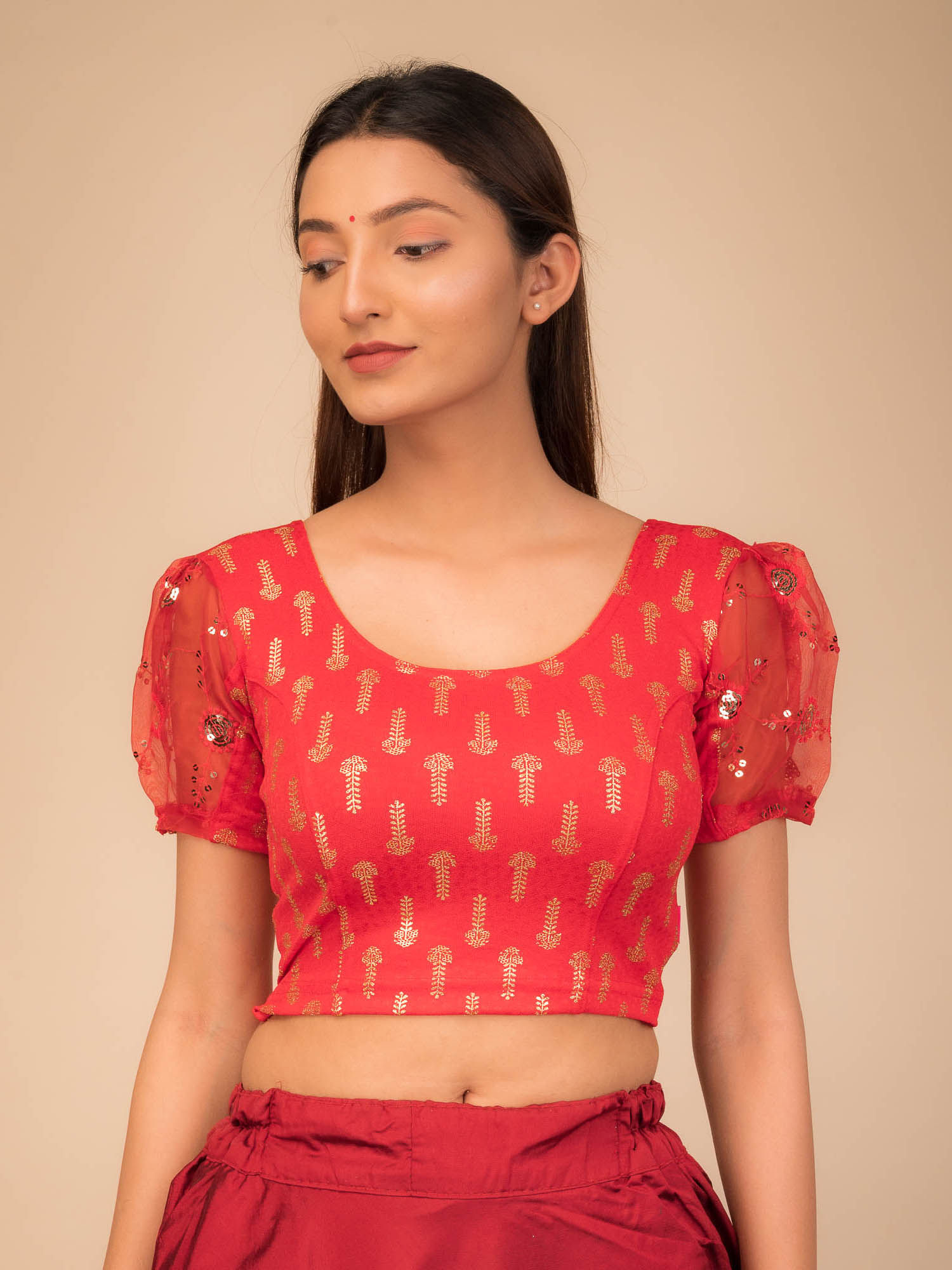 red stretchable blouse