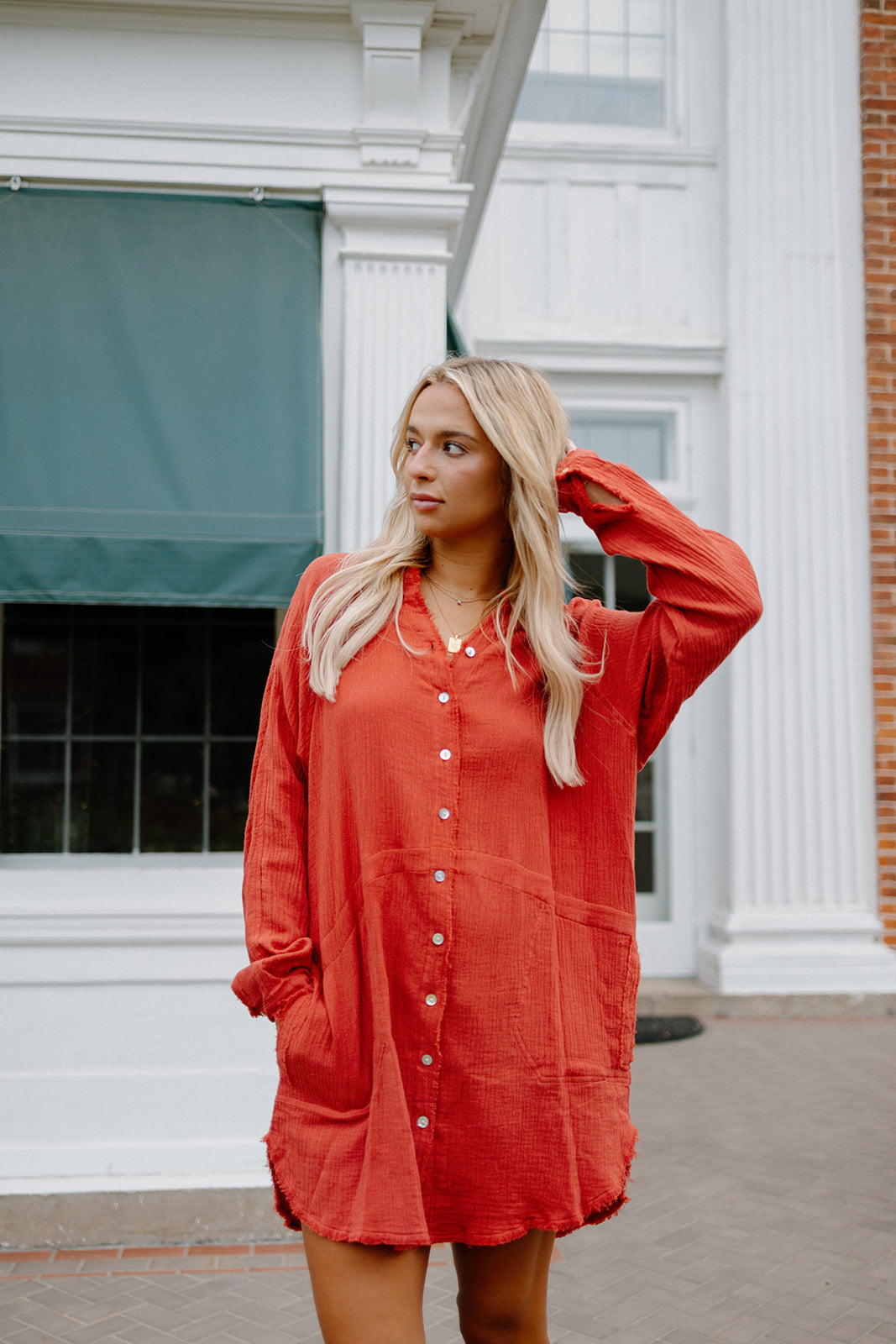 red tunic shirt