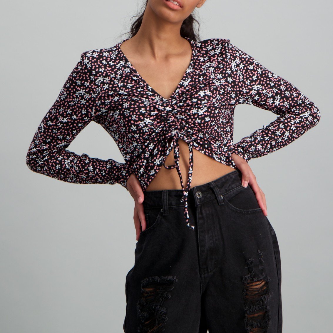 ruched drawstring long sleeve top