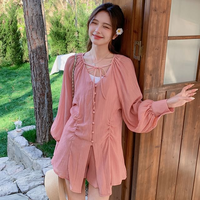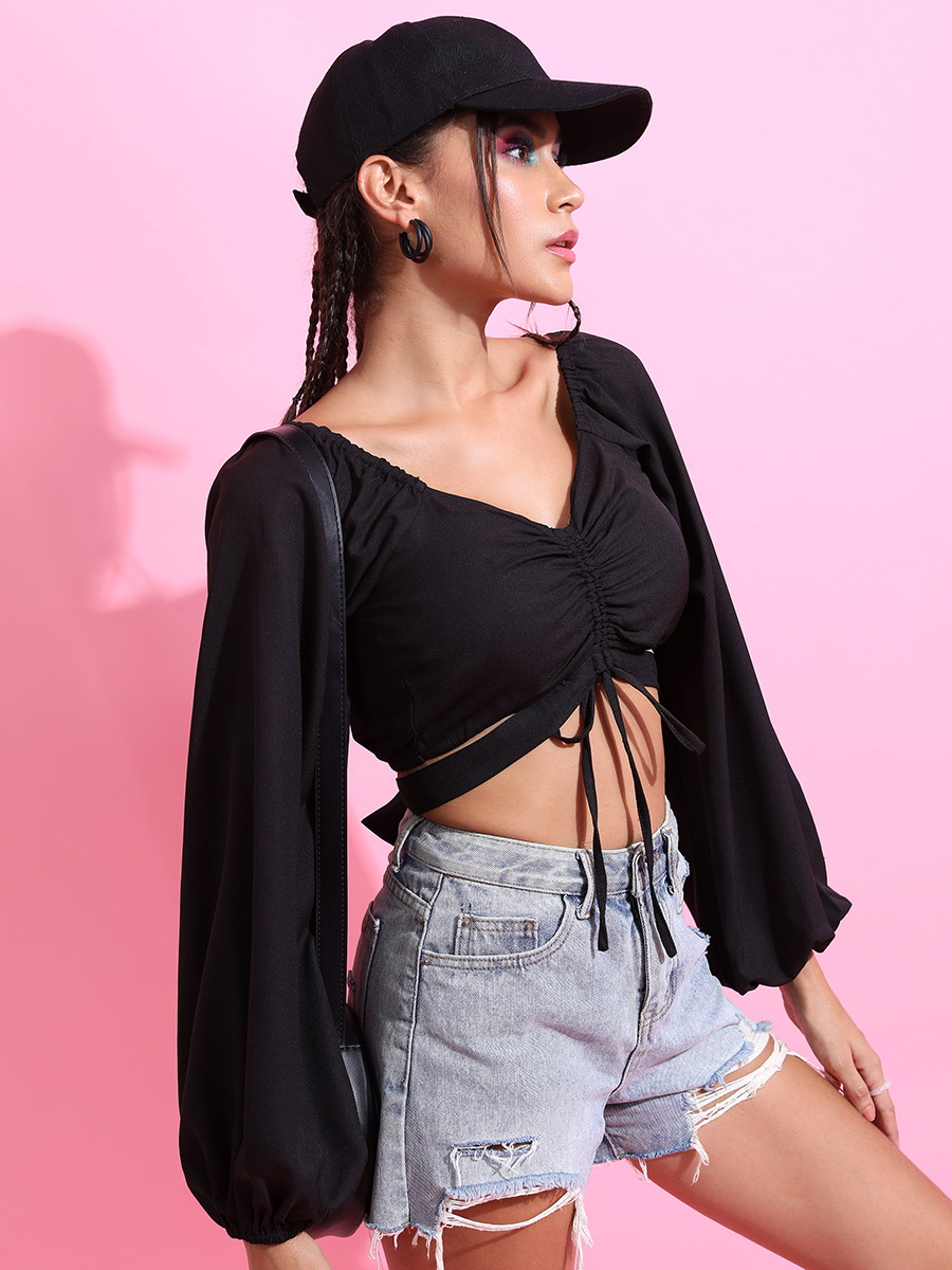 ruched tie front top