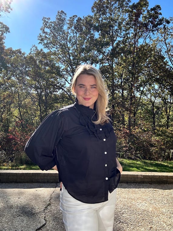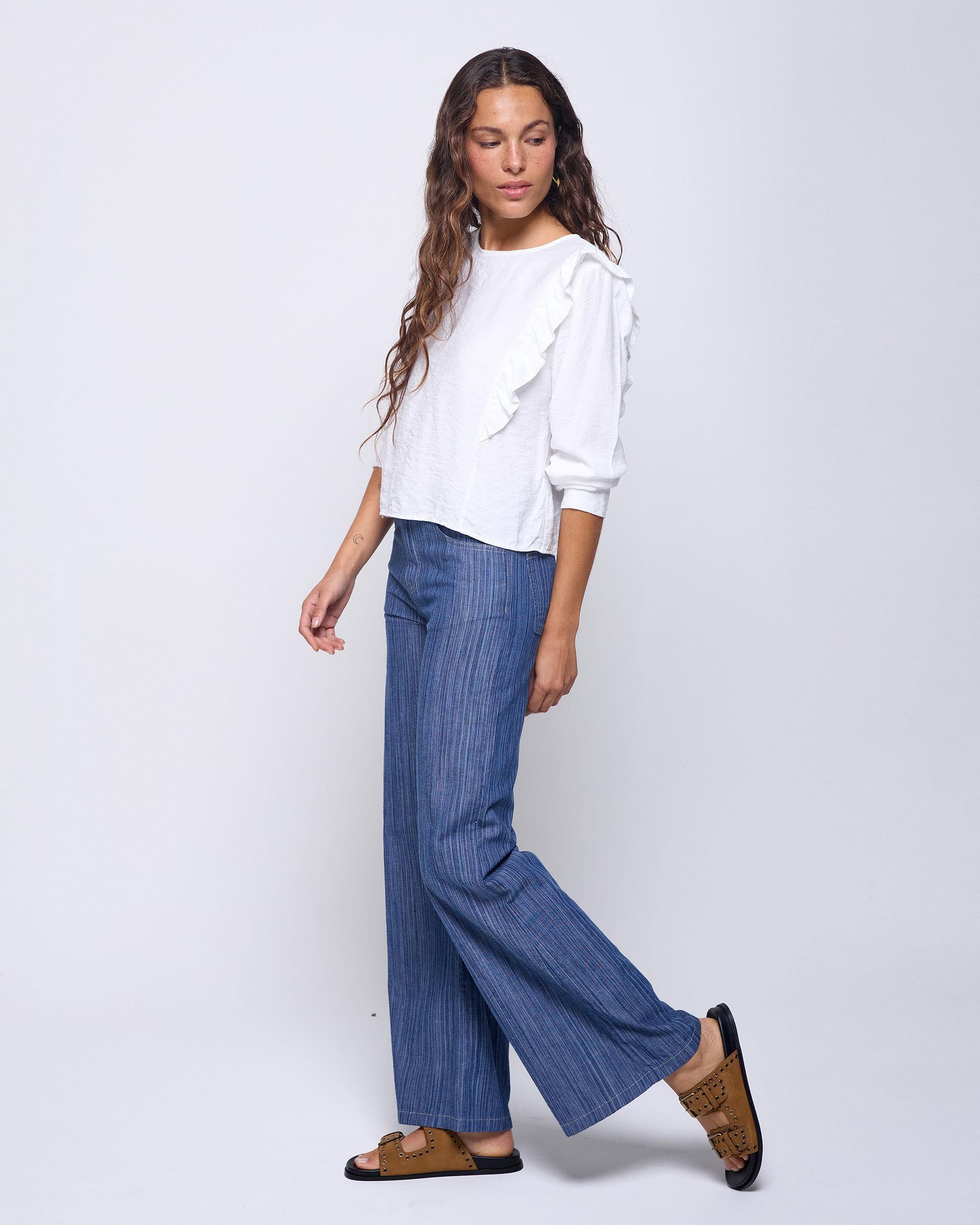 ruffle bib blouse