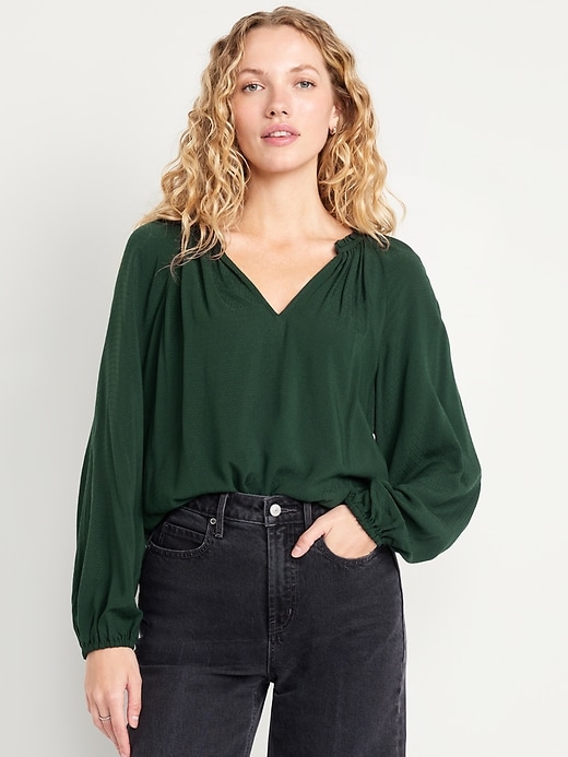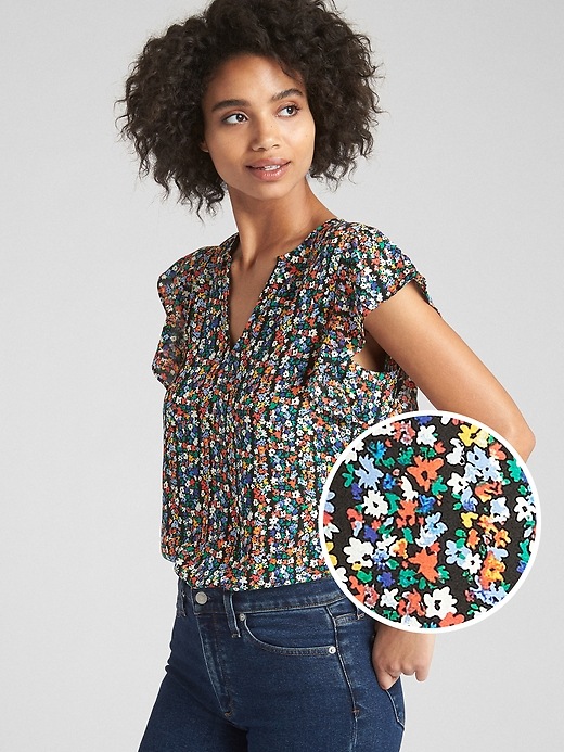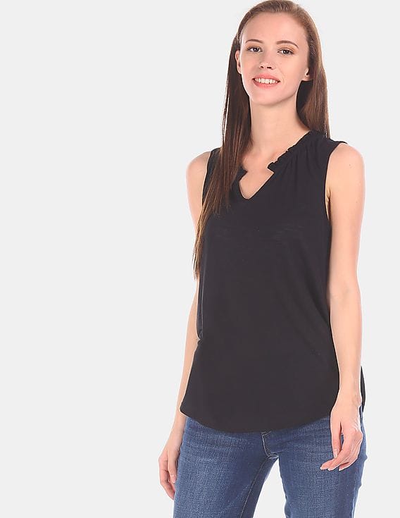 ruffle split neck top