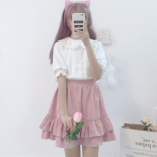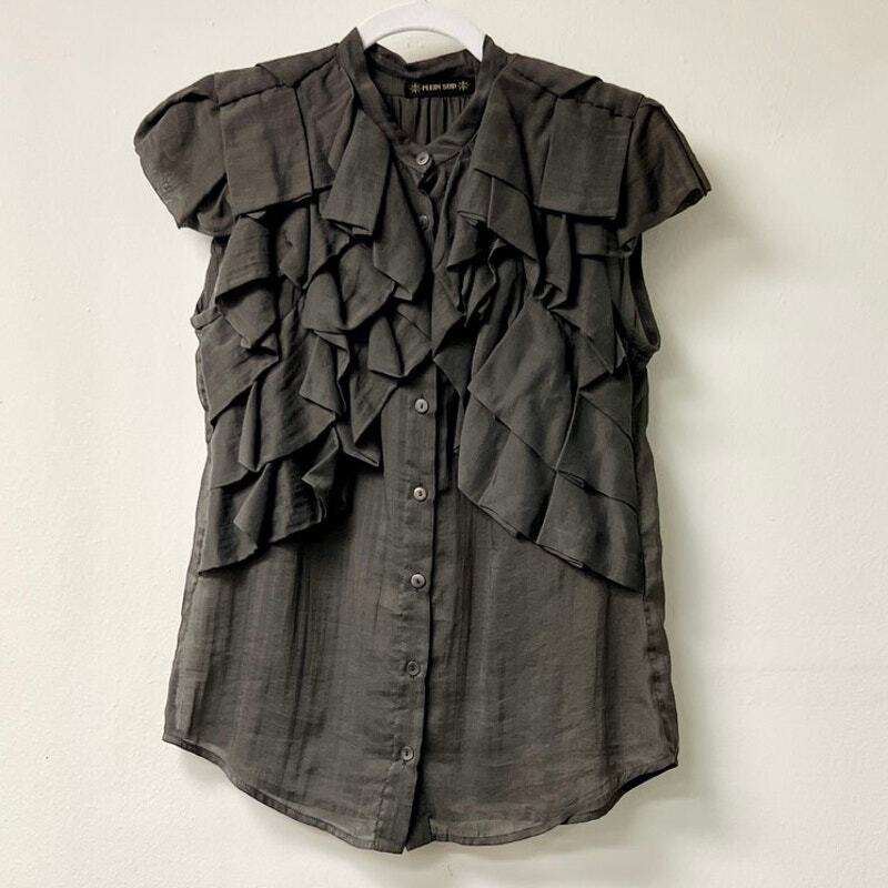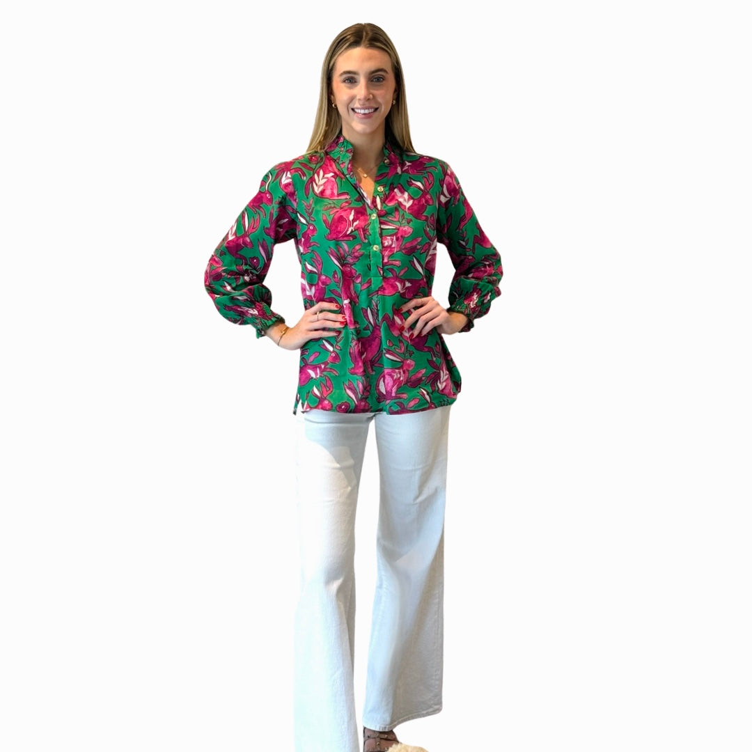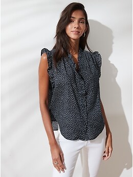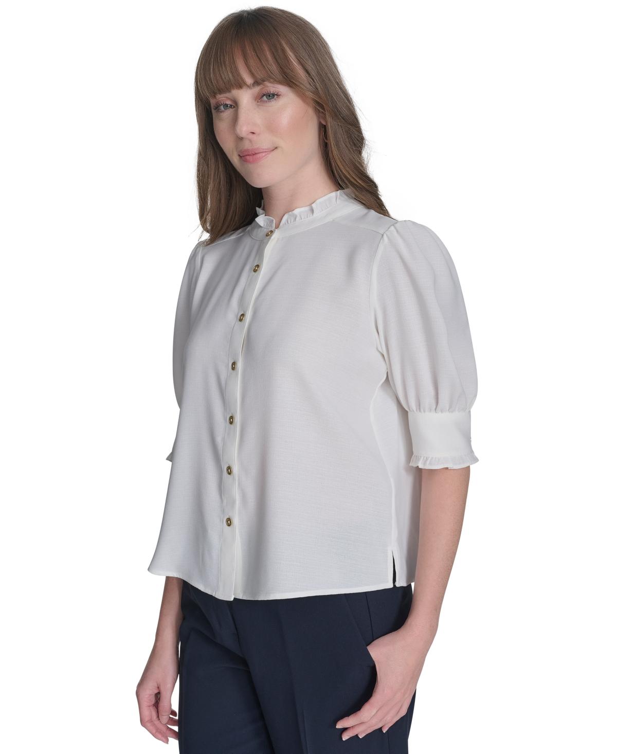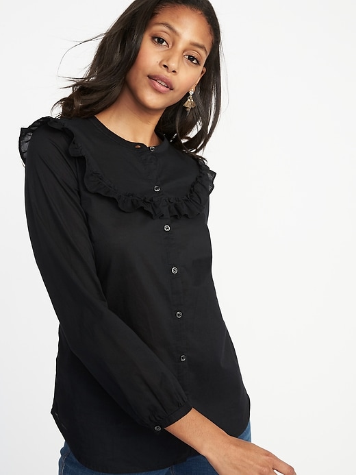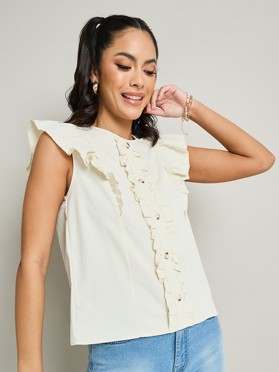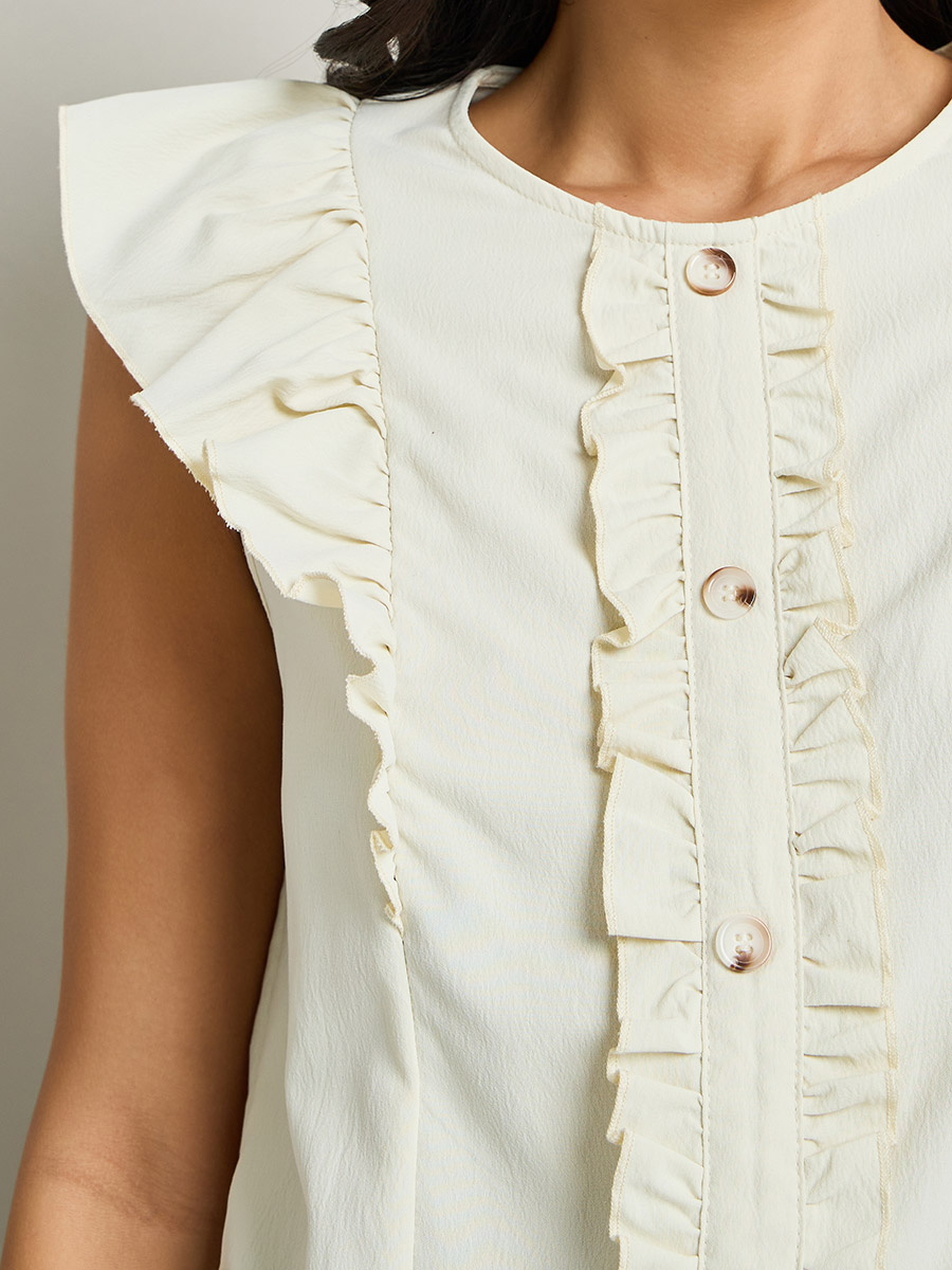 ruffle trim button front blouse