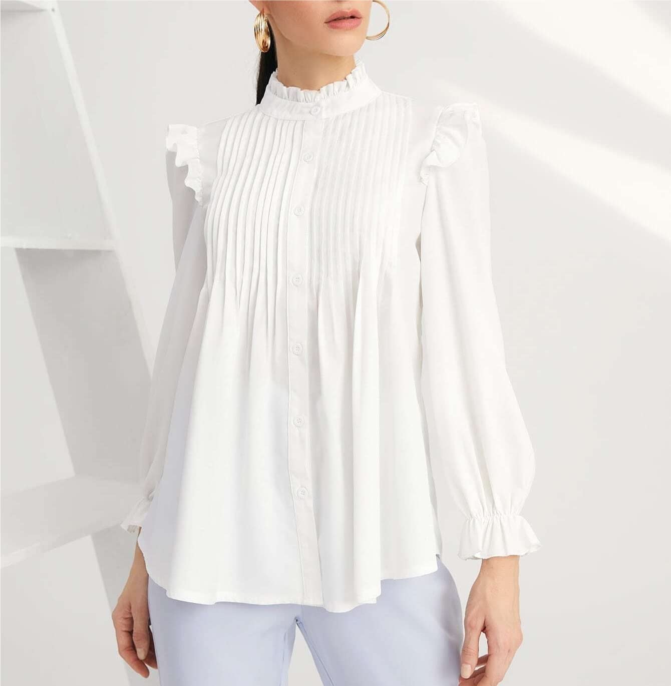 ruffled blouses long sleeve