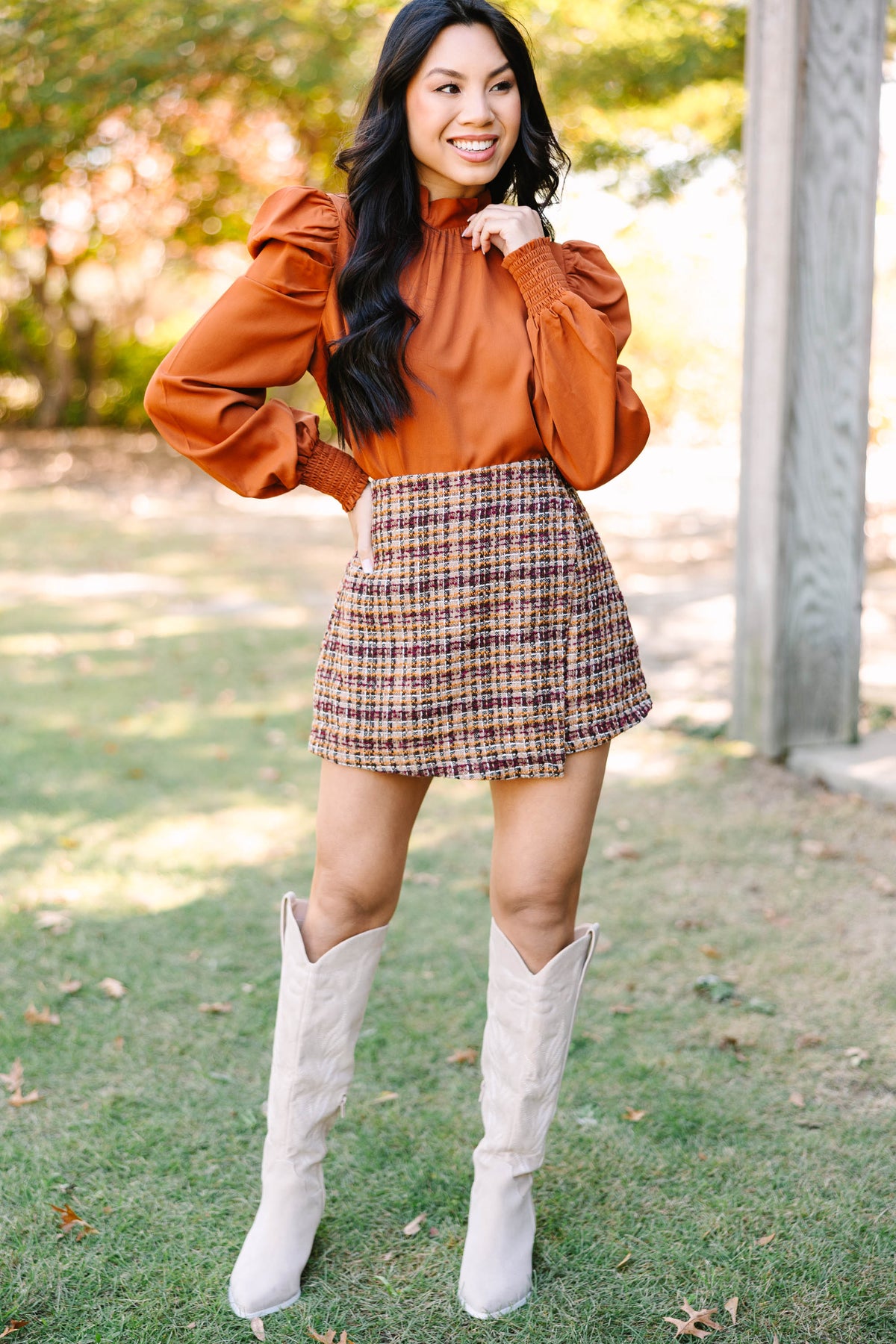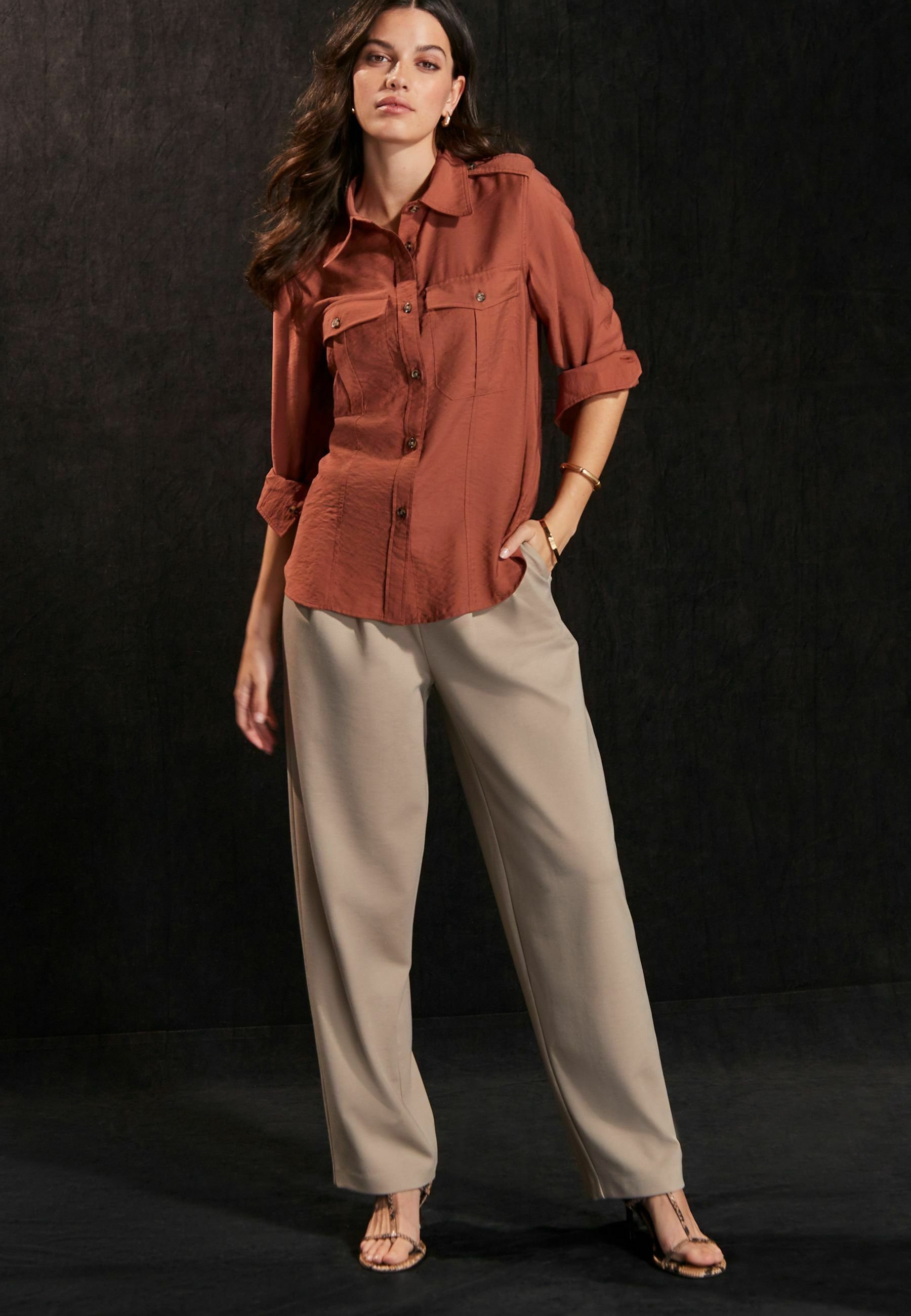 rust brown blouse