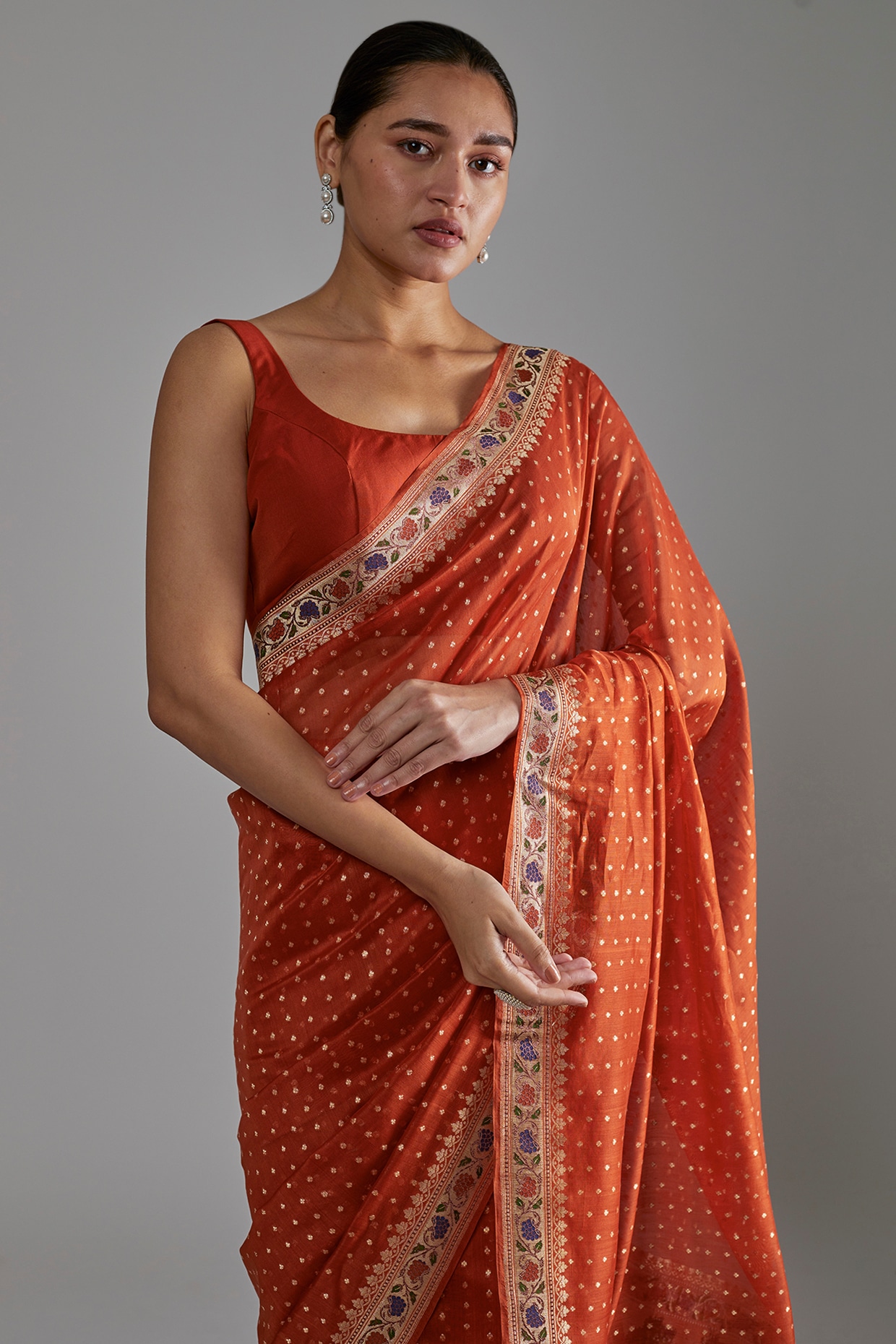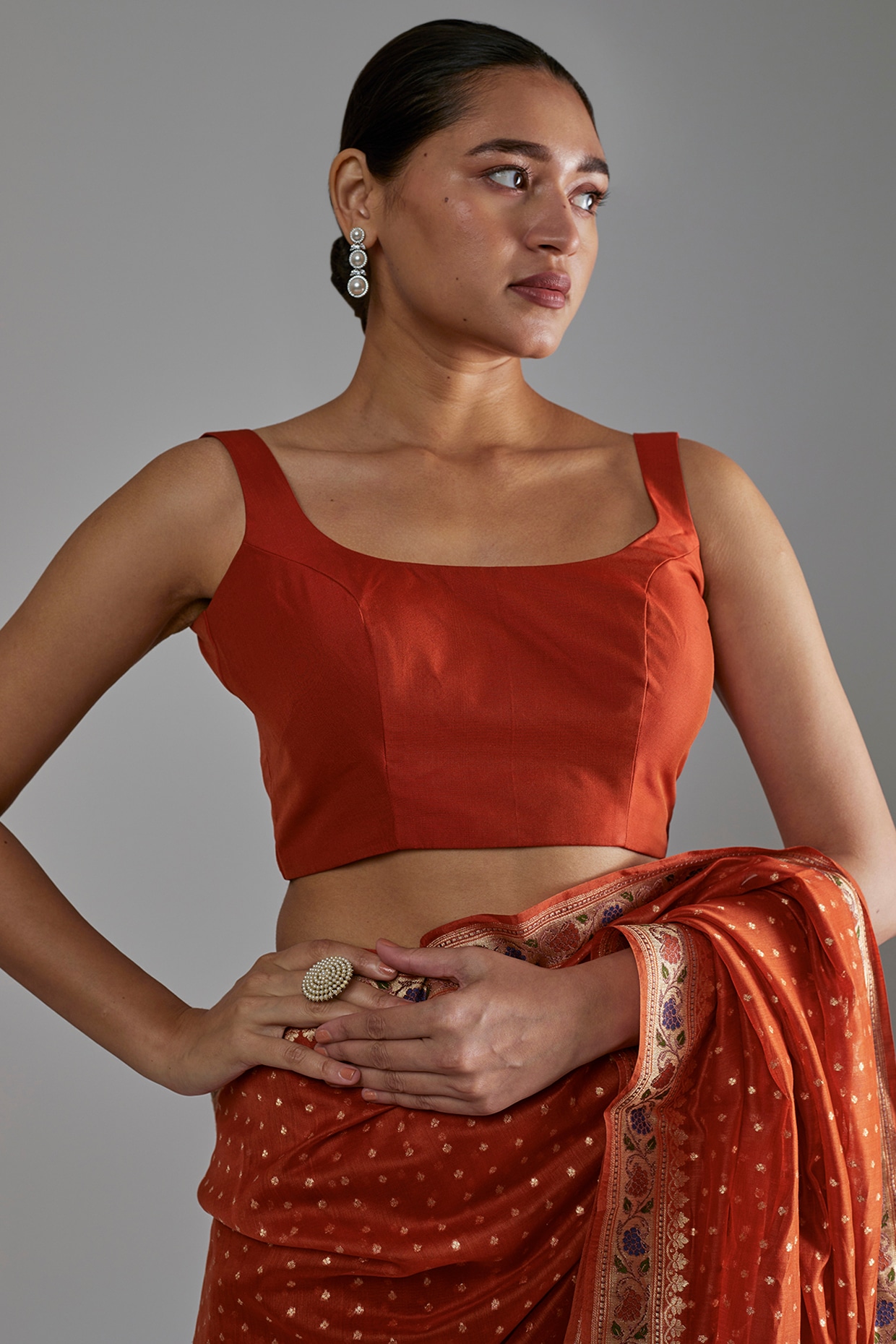 rust silk blouse