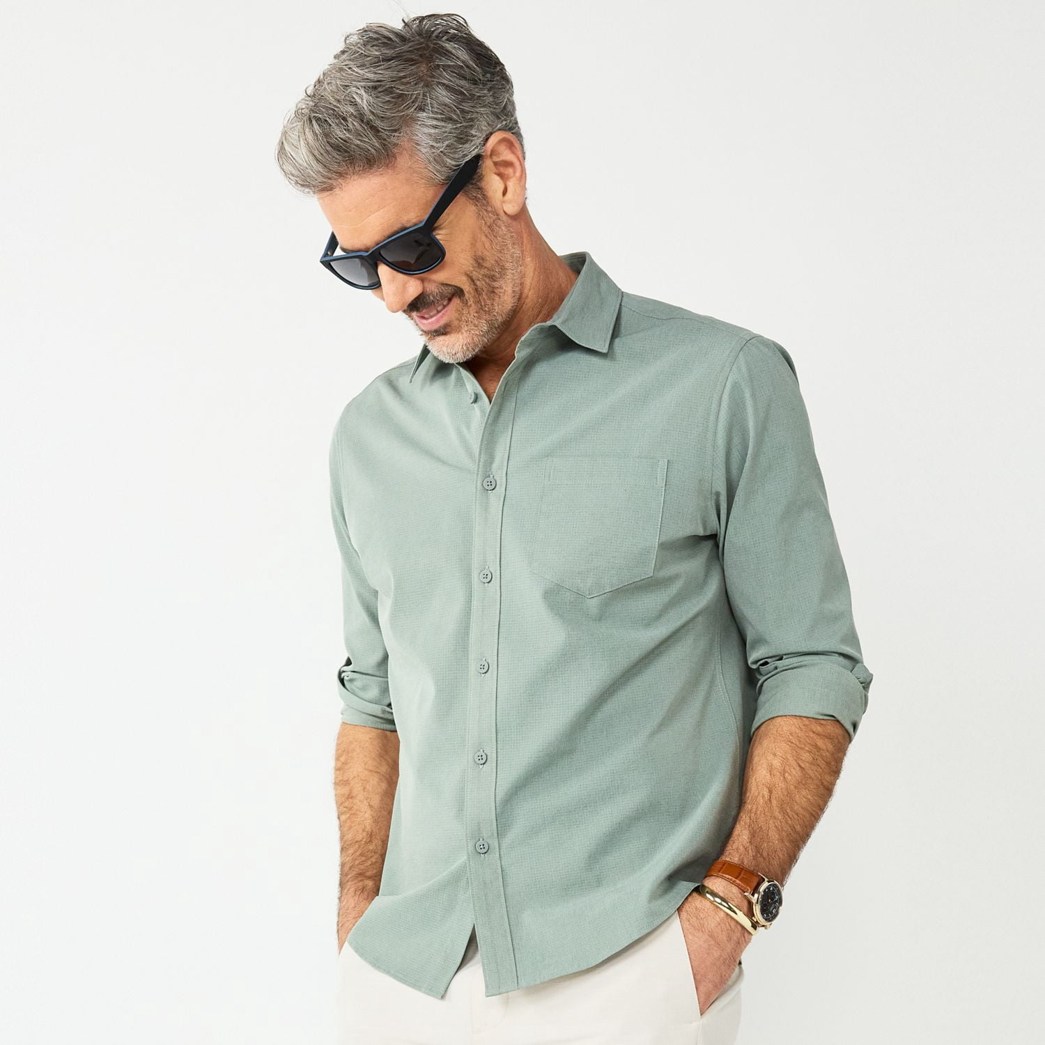 sage button down shirt