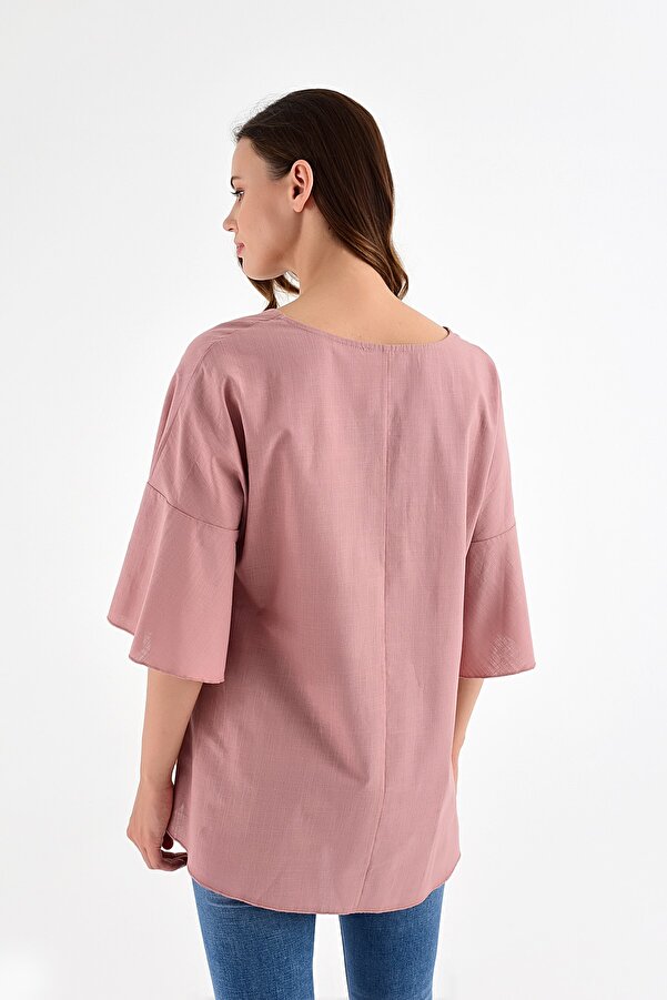 salmon colored blouse