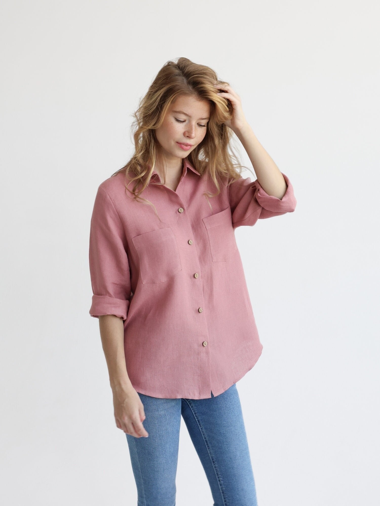 salmon pink blouse