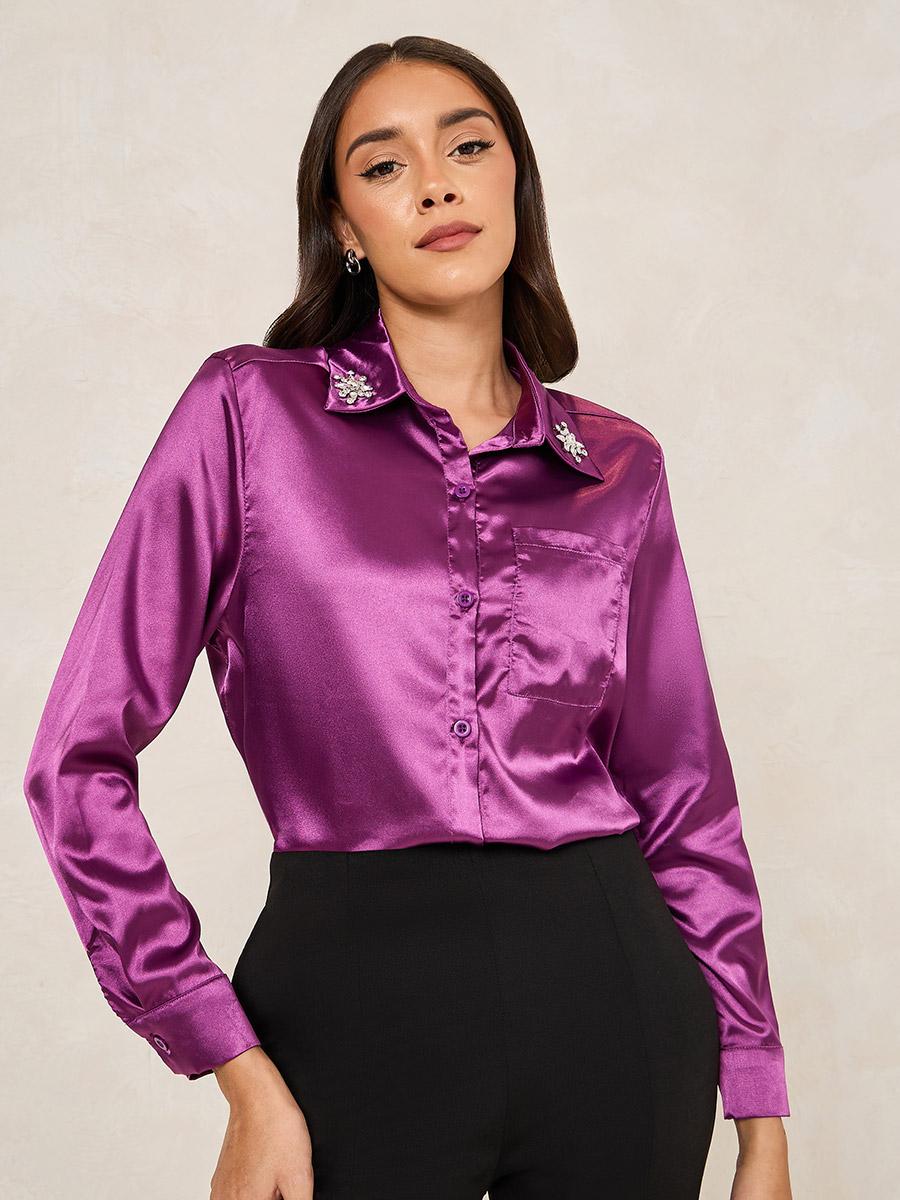 satin button front shirt