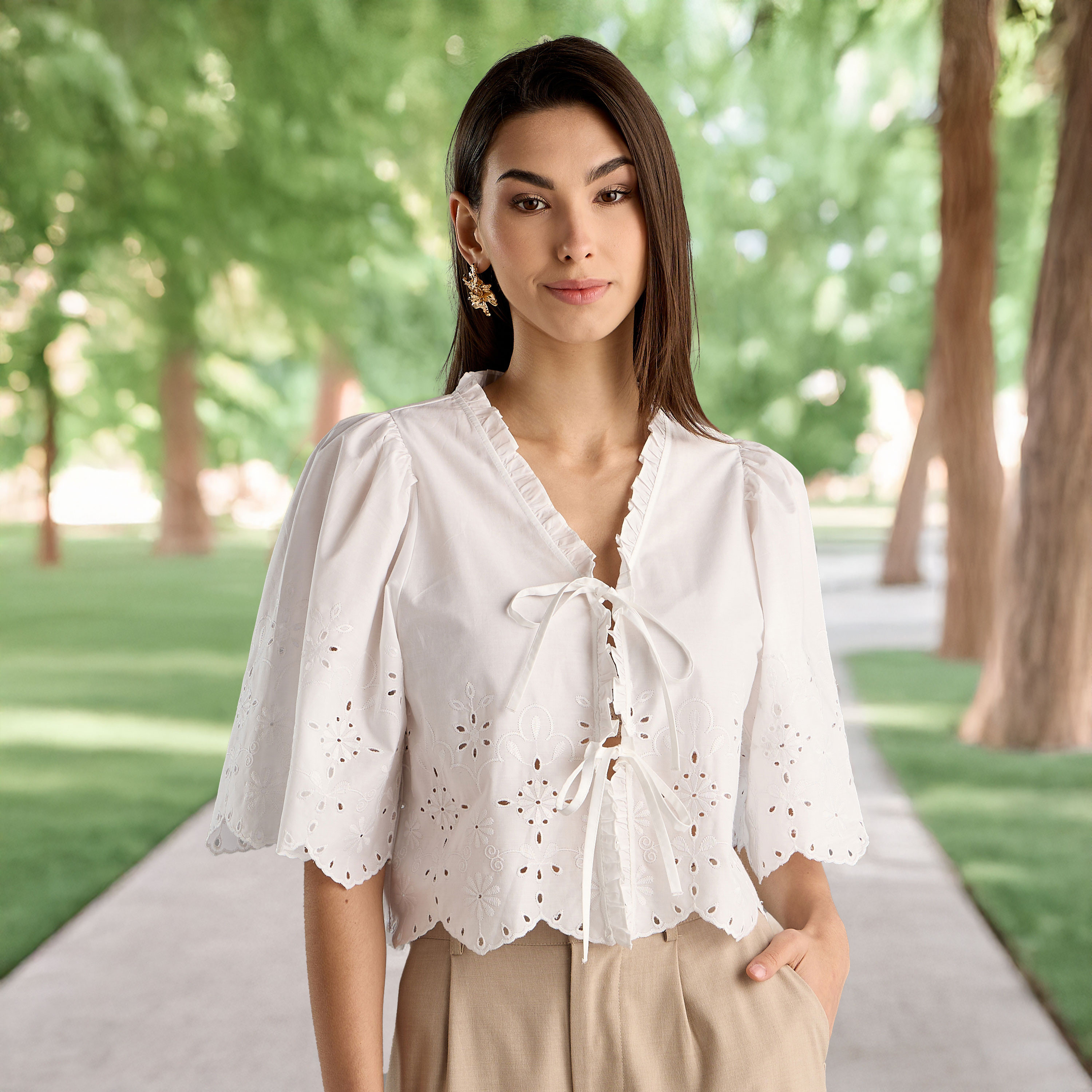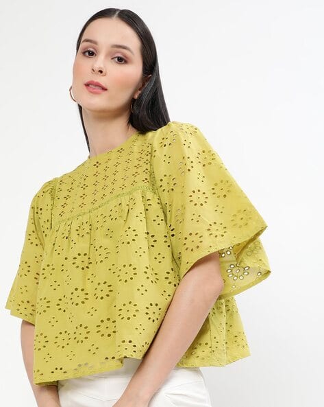 schiffli embroidered top