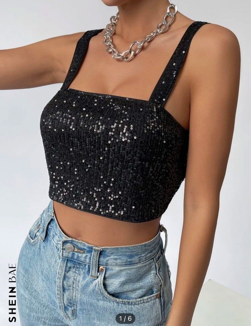 sequin crop top shein