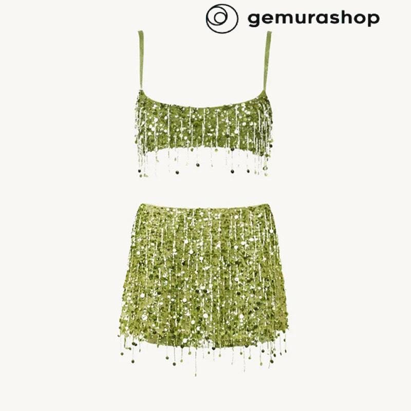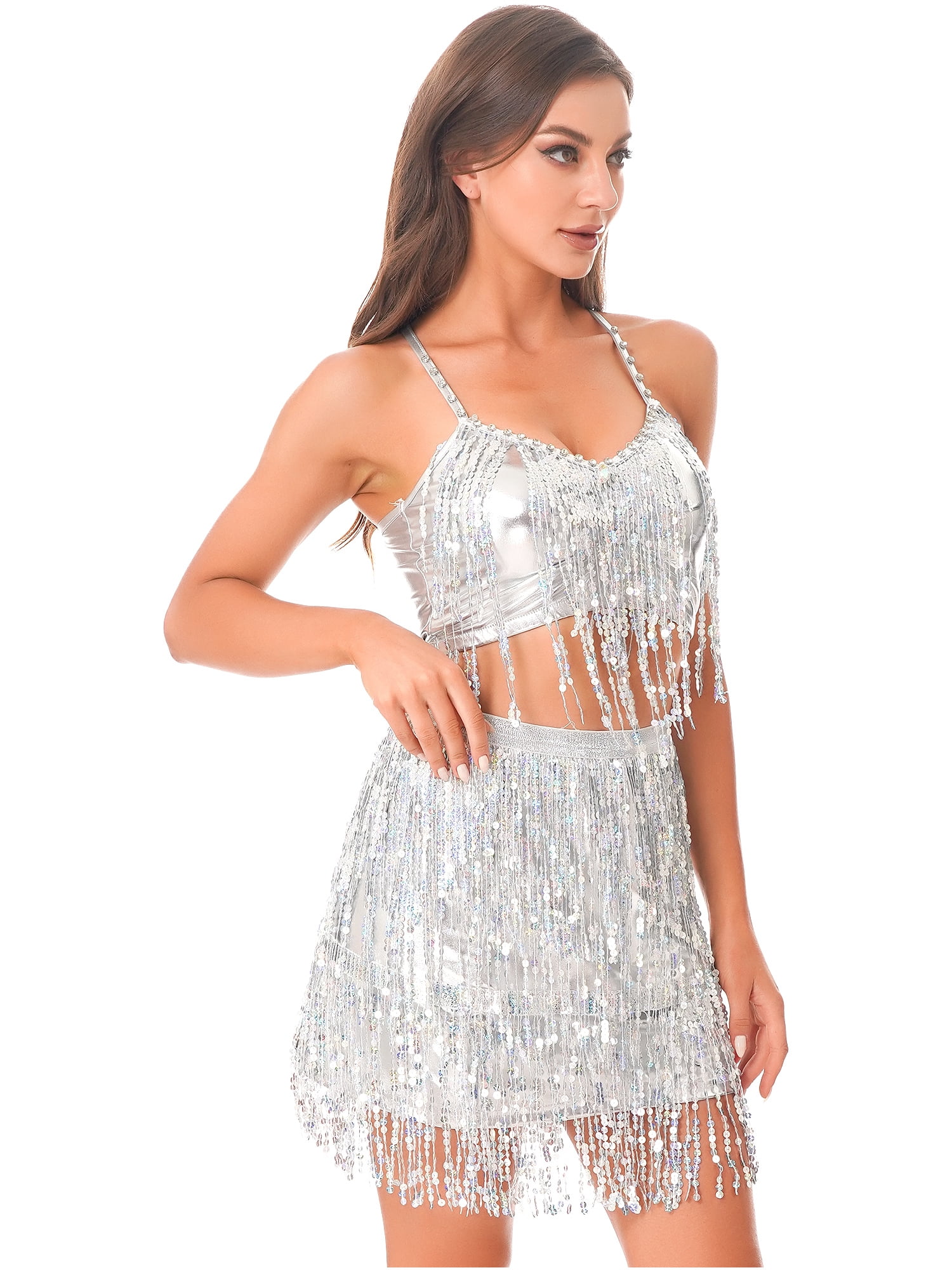 sequin fringe crop top