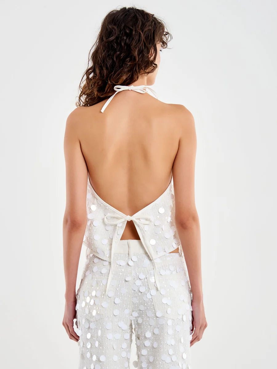 sequin open back top