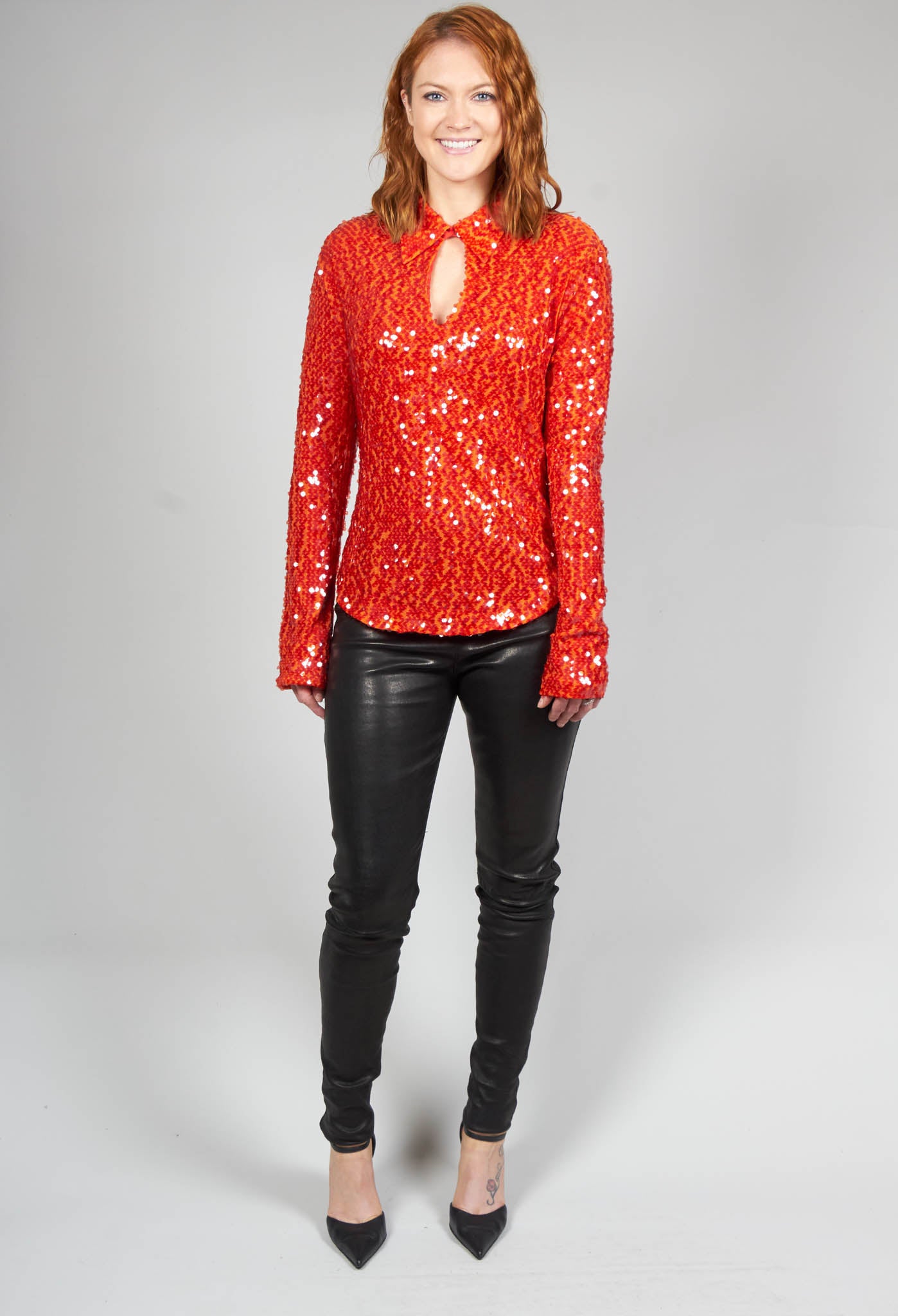 sequin red blouse