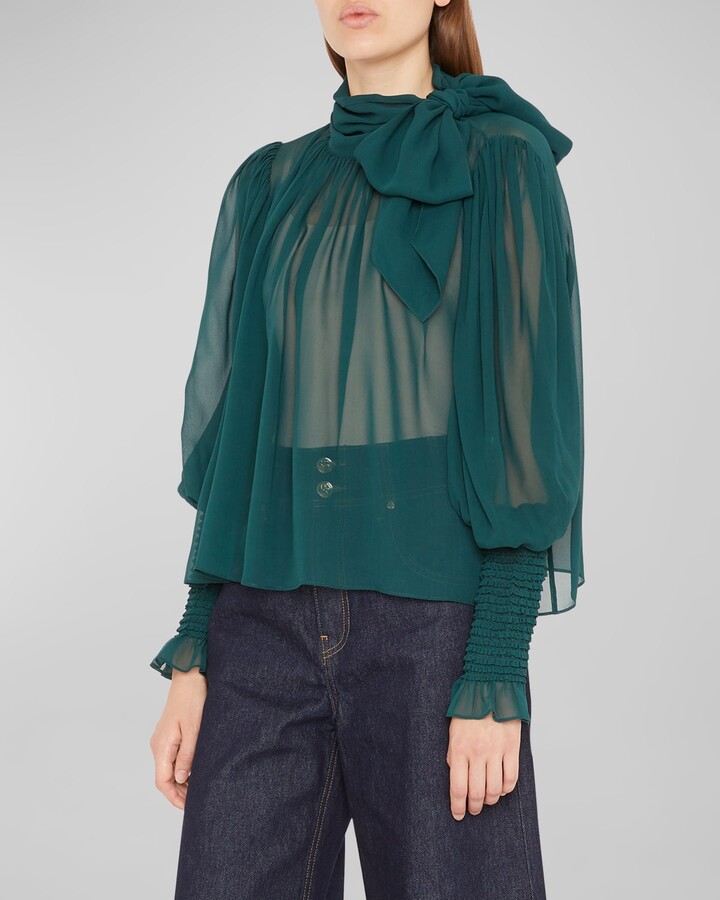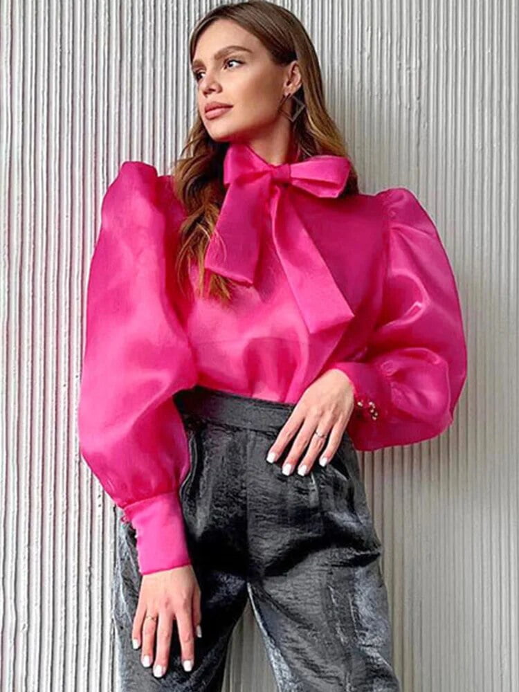 sheer blouse with bow