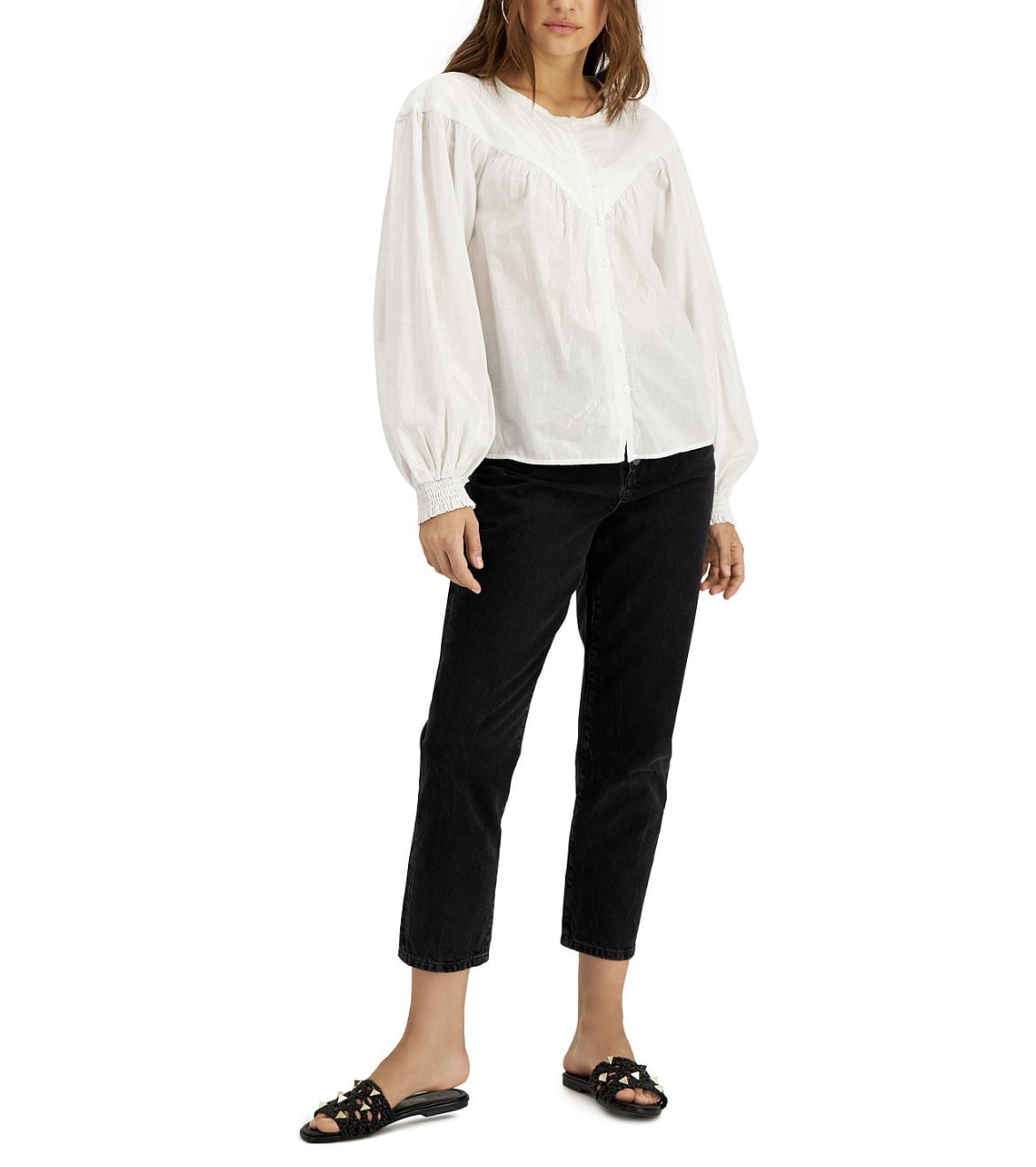 sheer bubble sleeve top