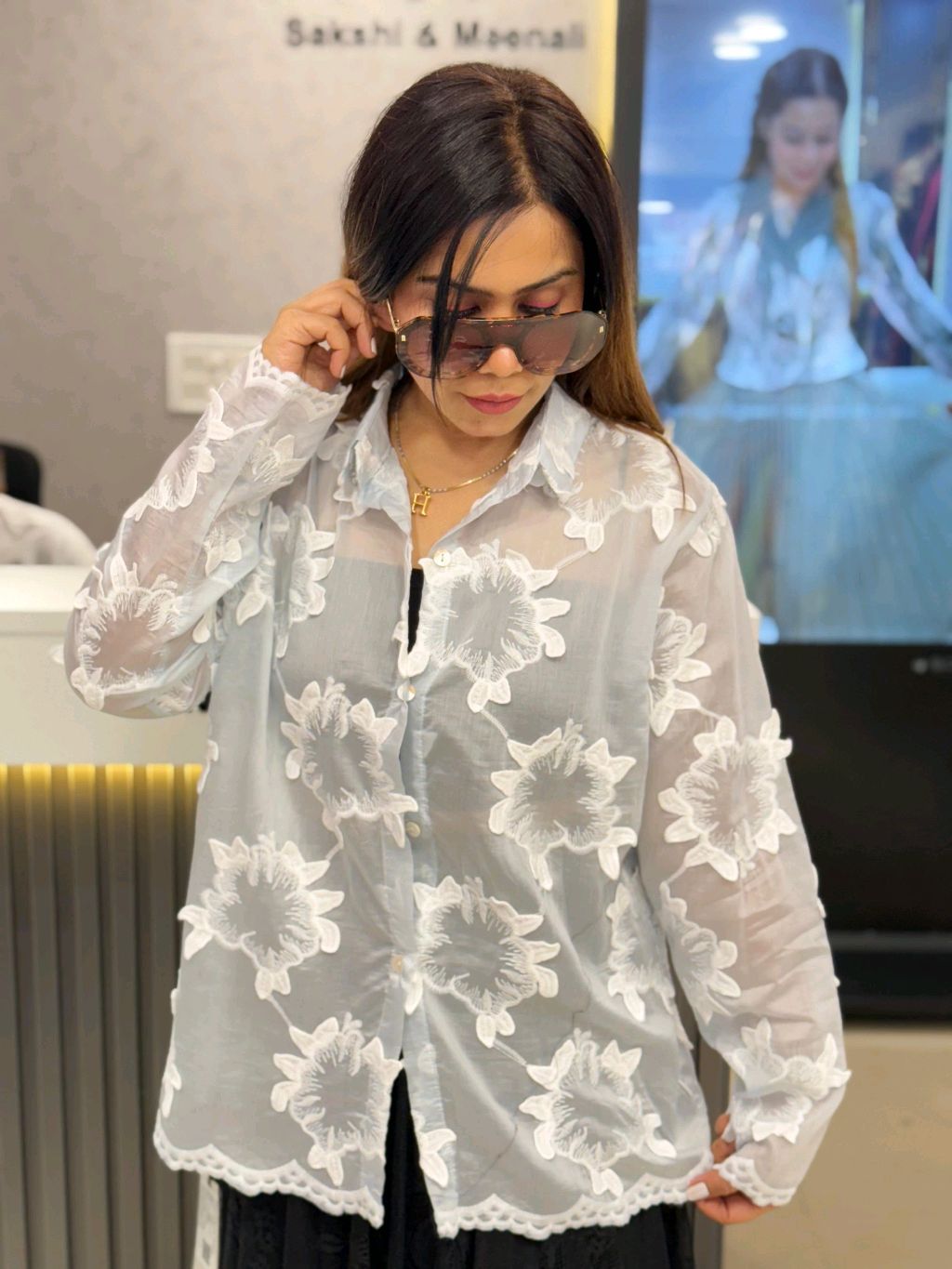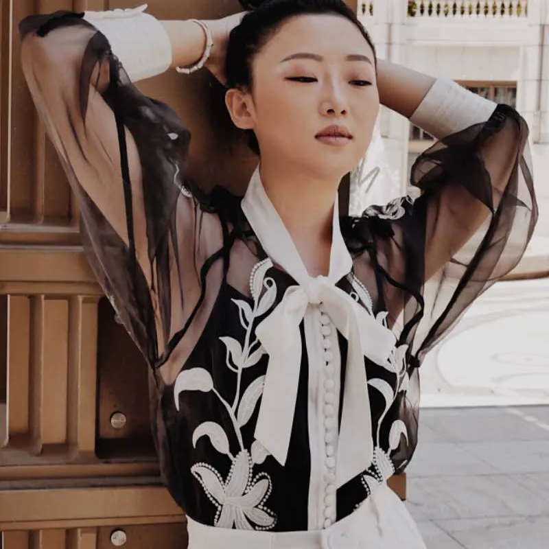 sheer embroidered shirt