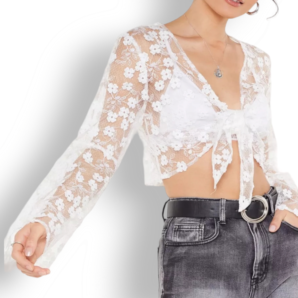 sheer mesh floral top