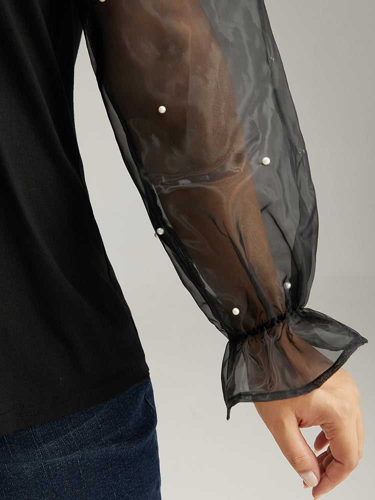 sheer patchwork shirt