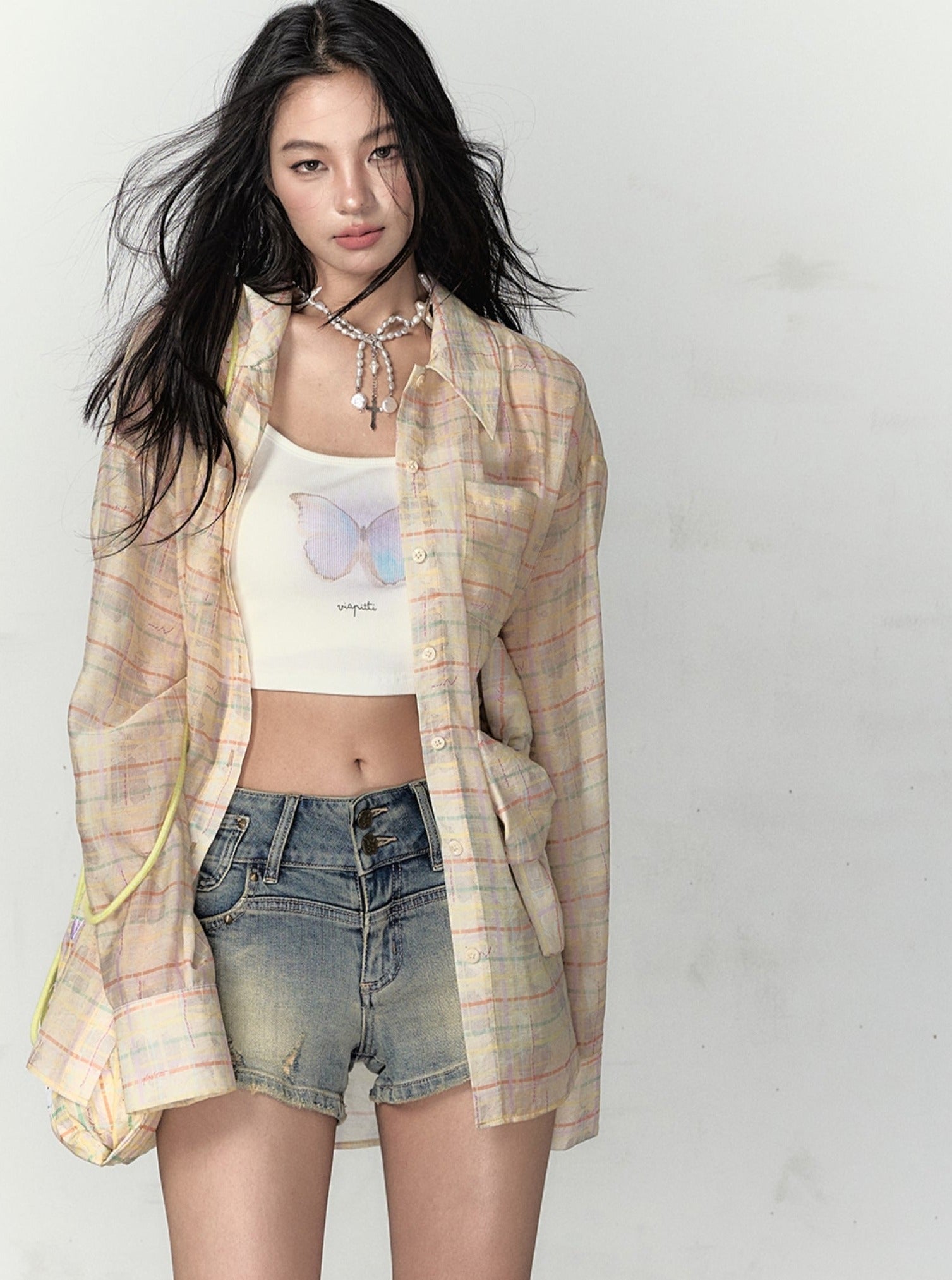 sheer plaid shirt