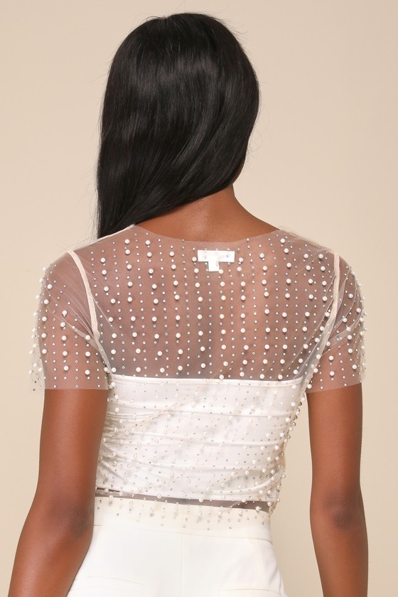 sheer top with pearls