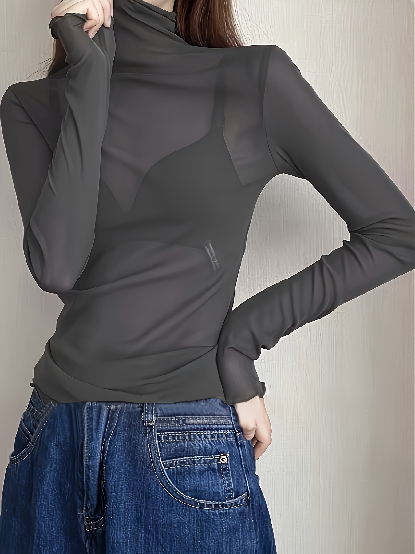 sheer turtleneck top