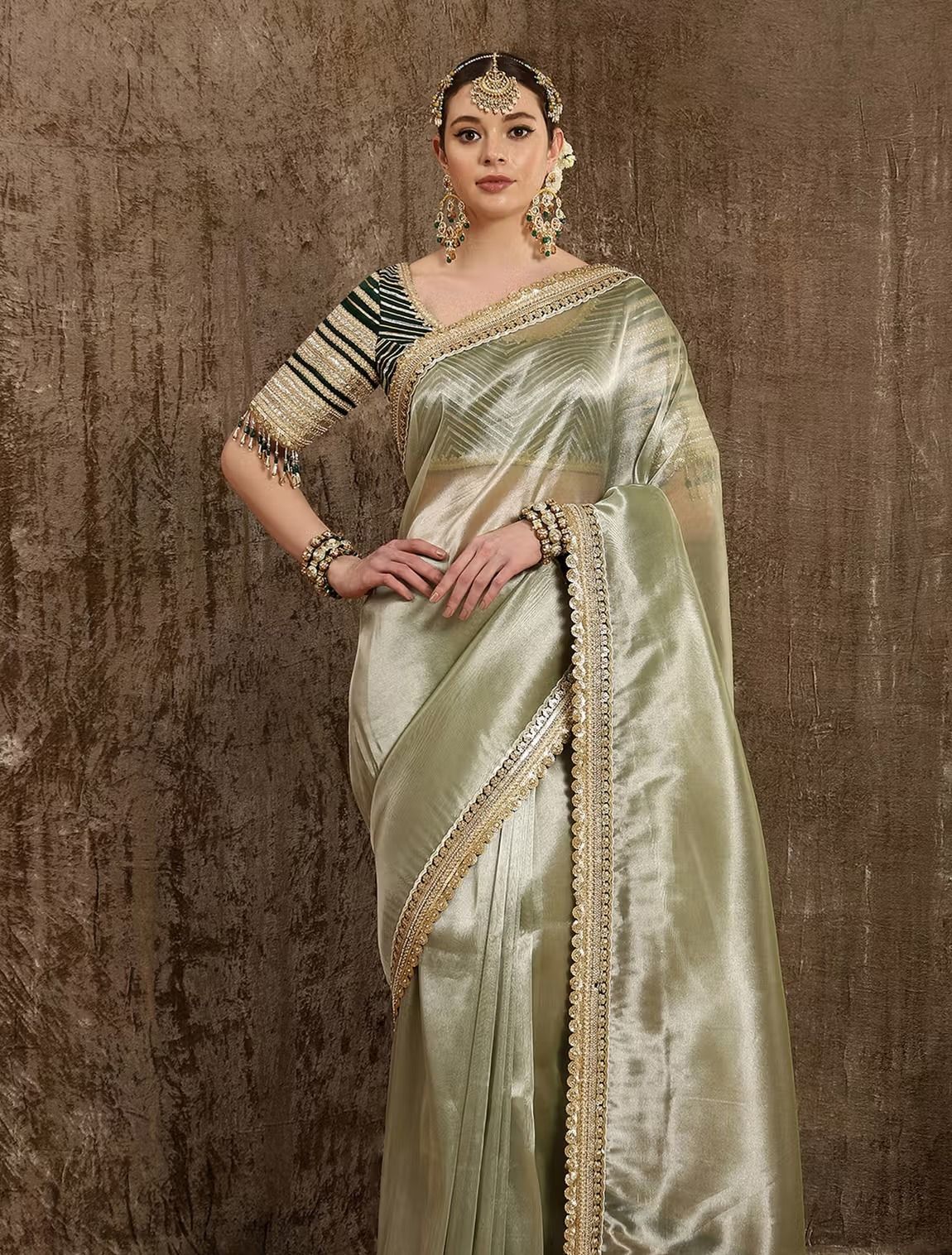 shimmer blouse with saree
