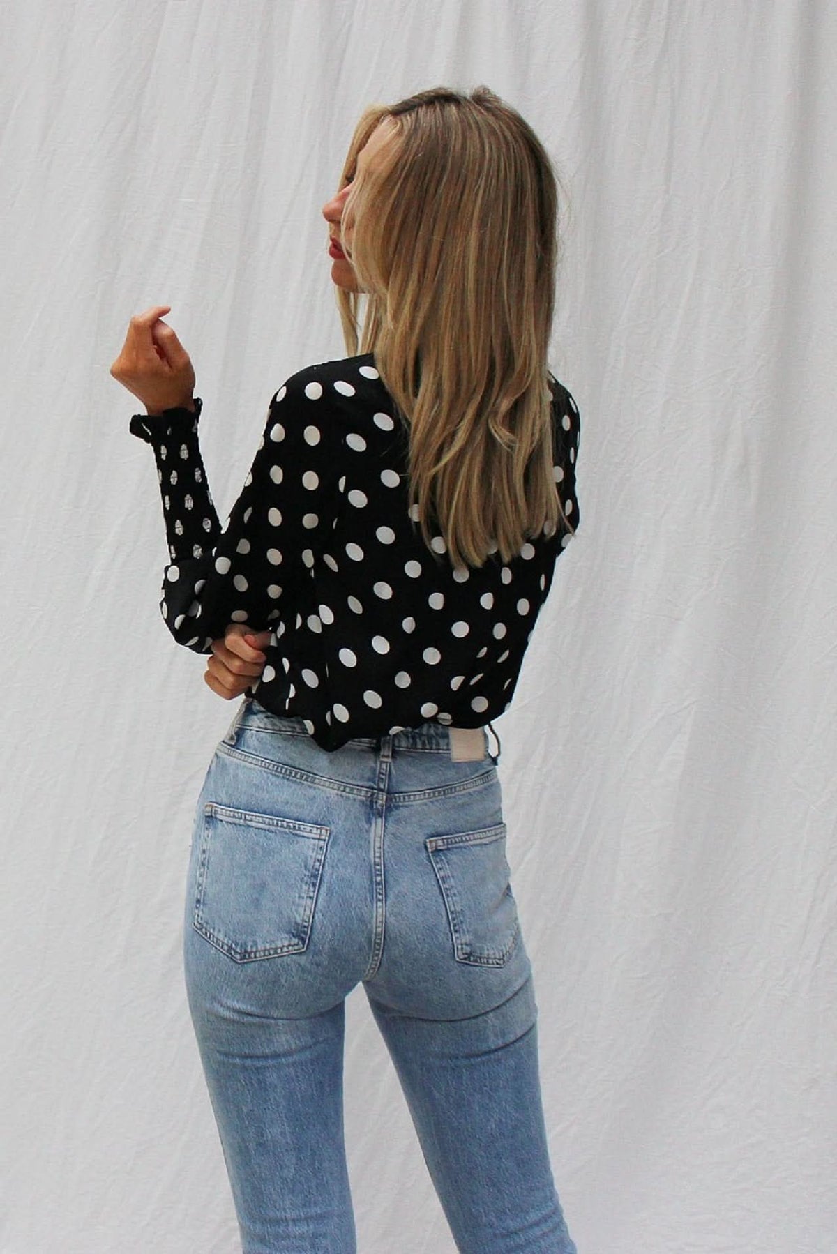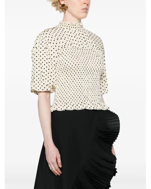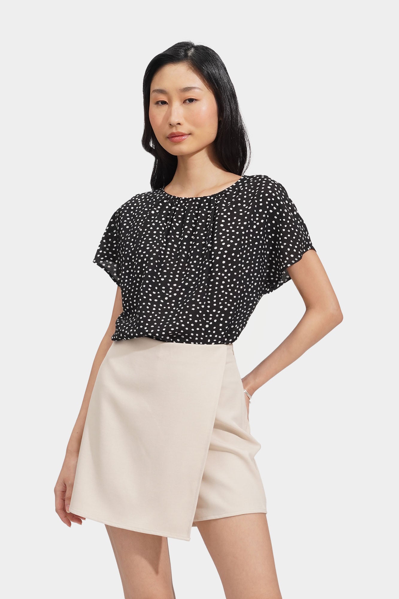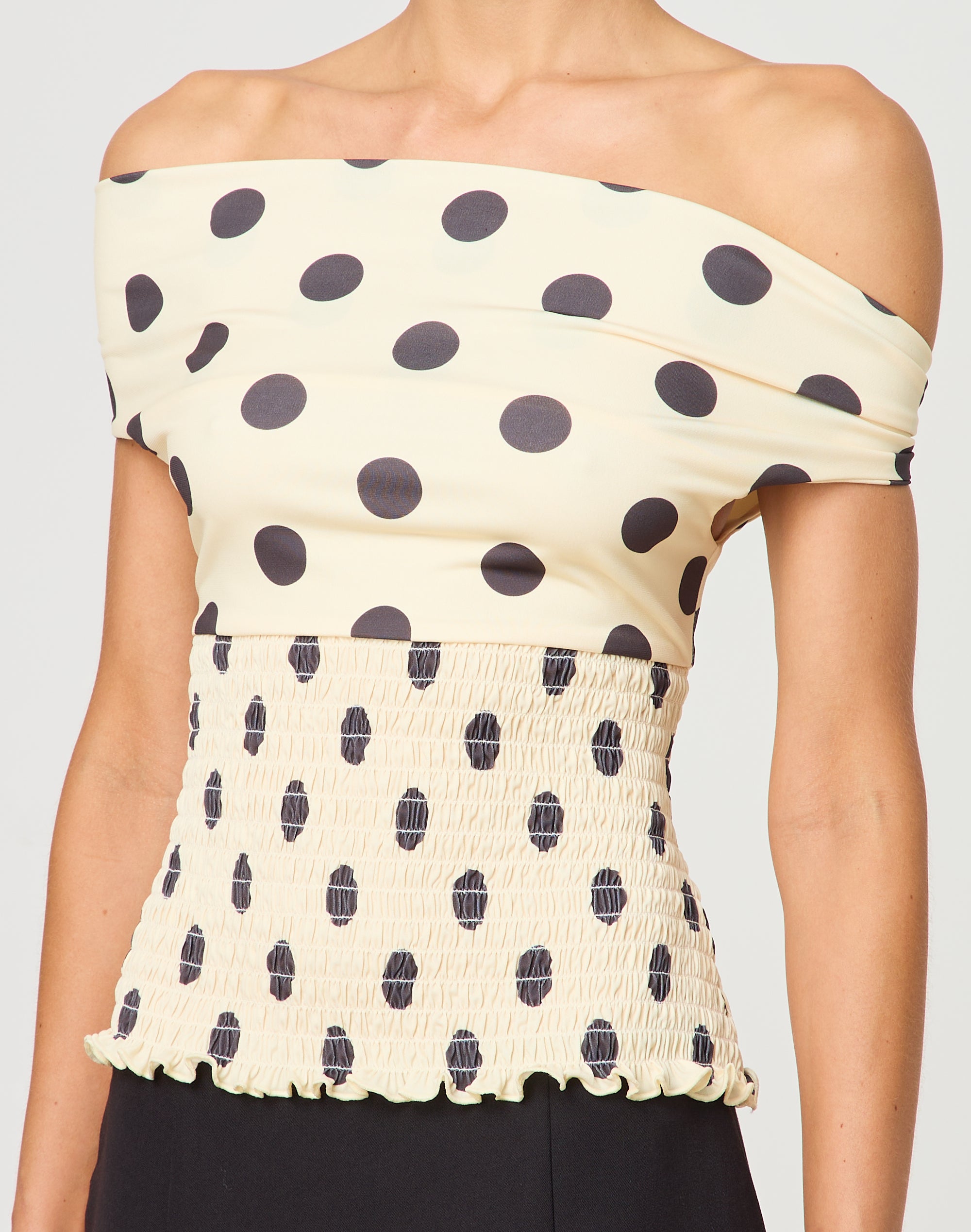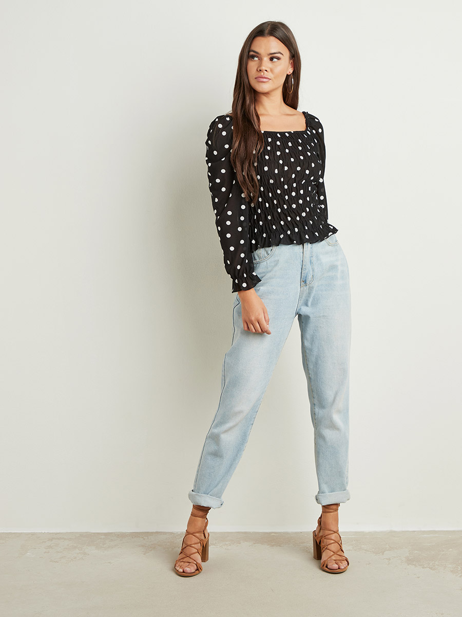 shirred polka dot top