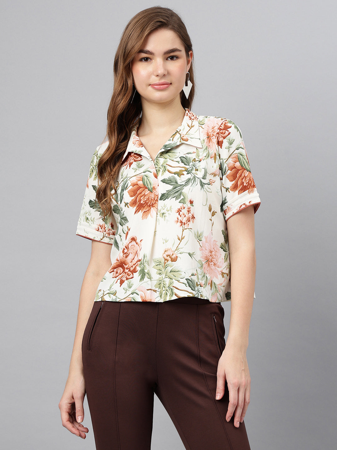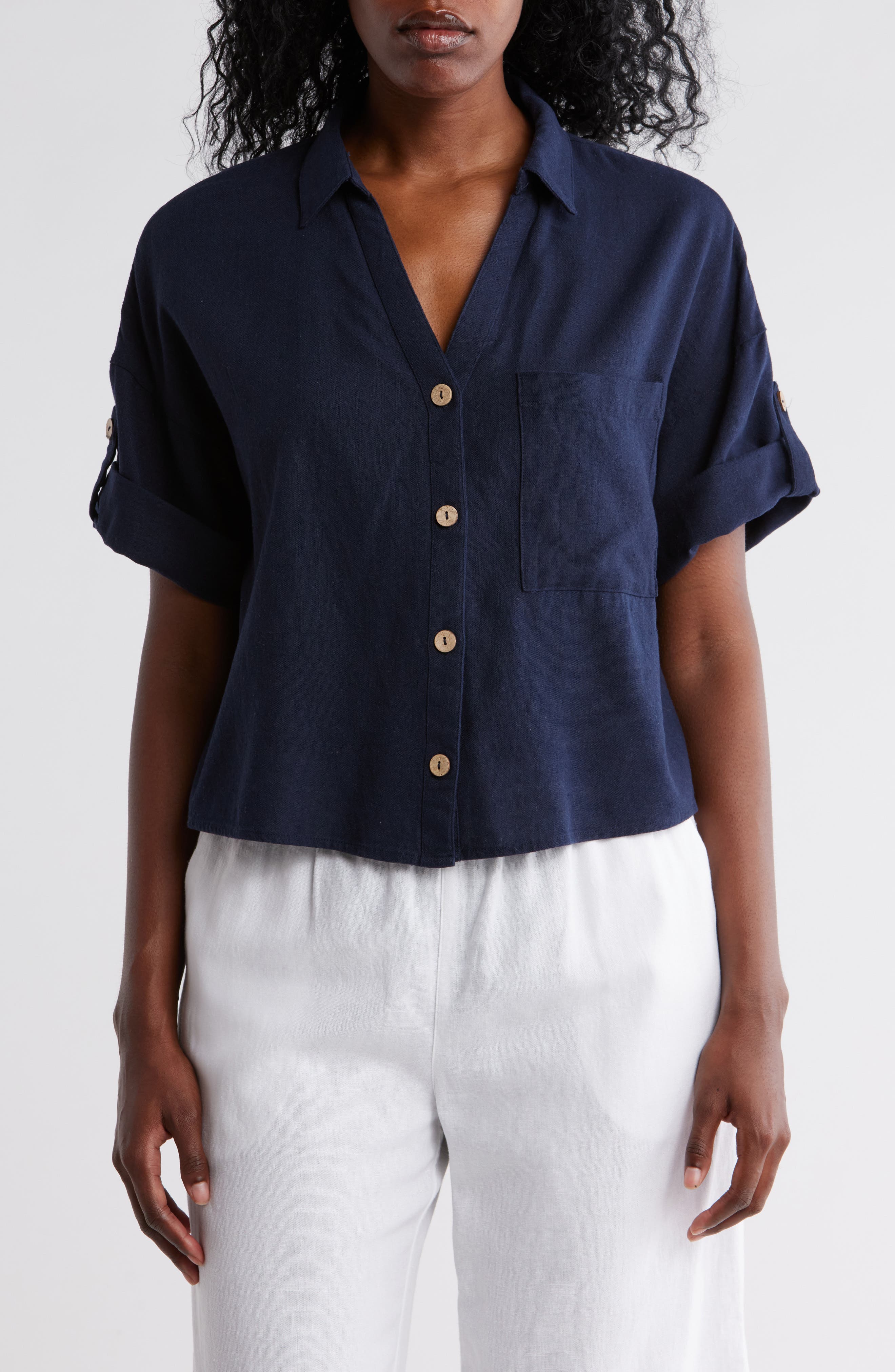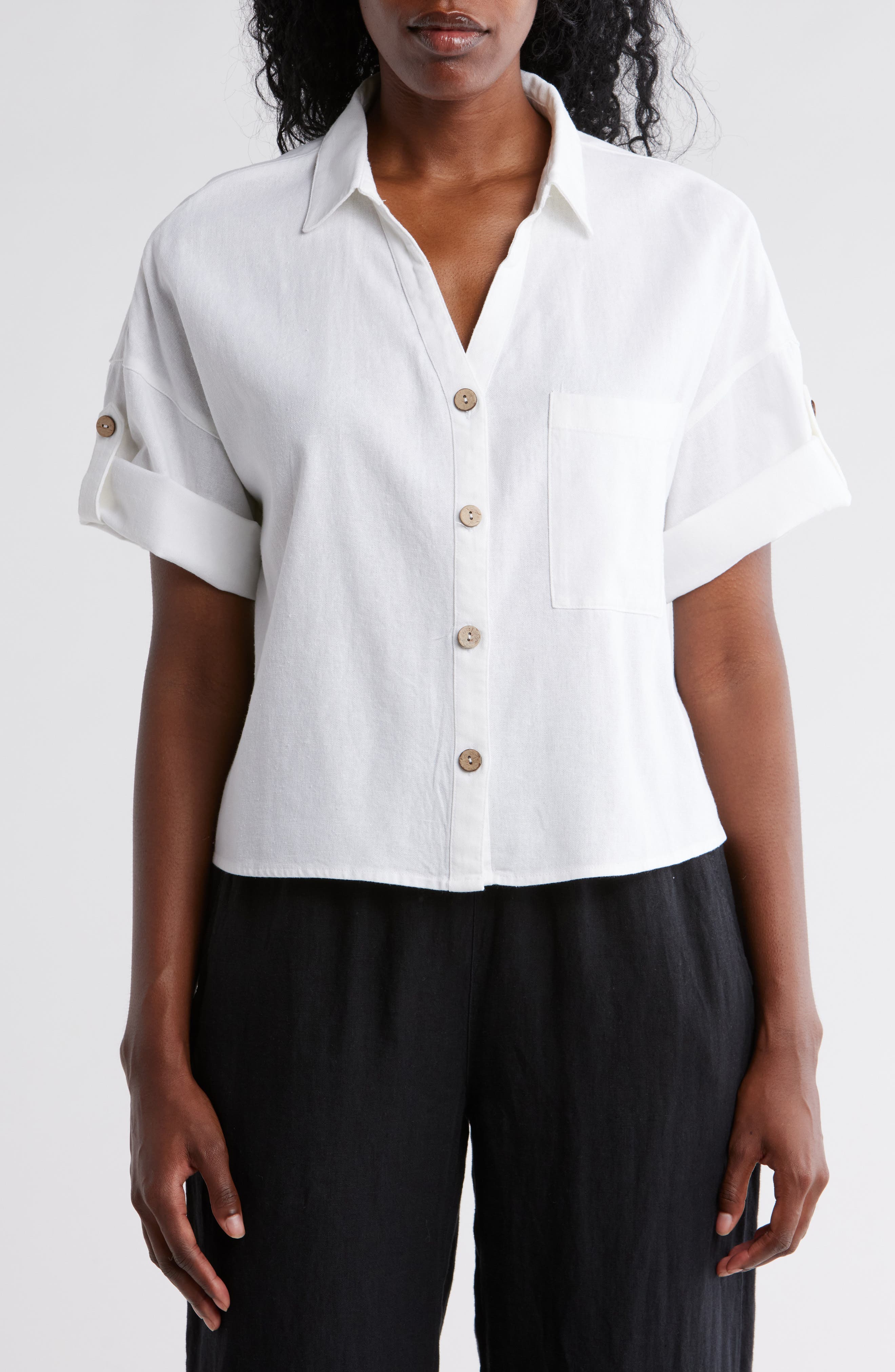short sleeve button crop top