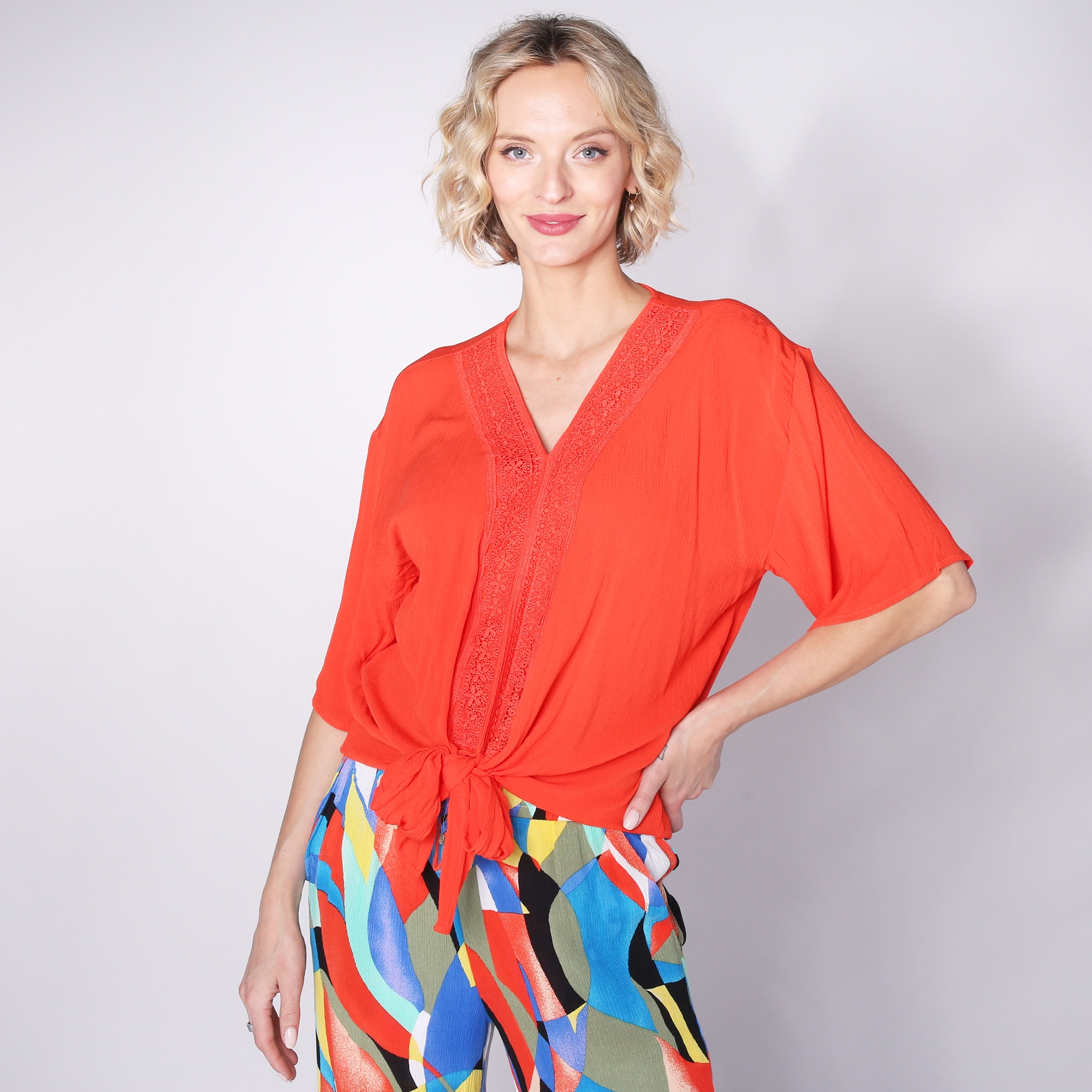 silk tie front top
